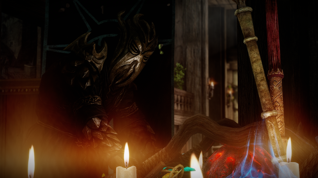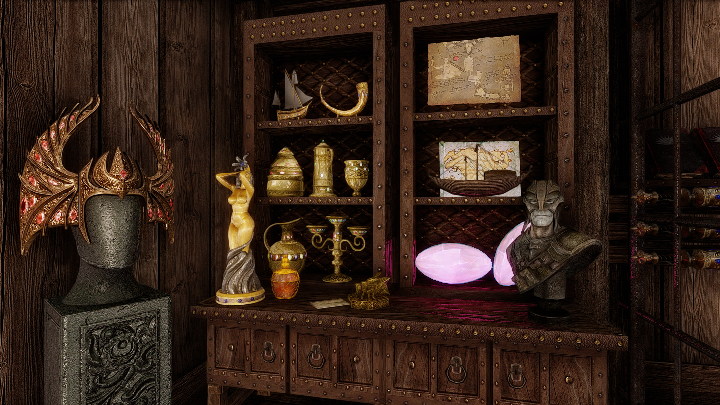 祠やアルゴニアンの侍女の1~2巻がそっと置かれています。窓際にはマネキンさんもいます。