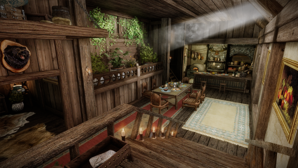 ホワイトランを出てすぐのところに家を追加するMODです。内風呂や、ホワイトラン周辺の景色が楽しめるテラスもついています。