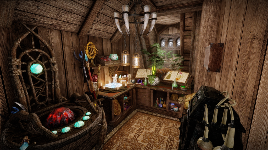 左から、杖用の付呪器・アルケイン付呪器・錬金器具です。窓の手前側が錬金器具になっています。