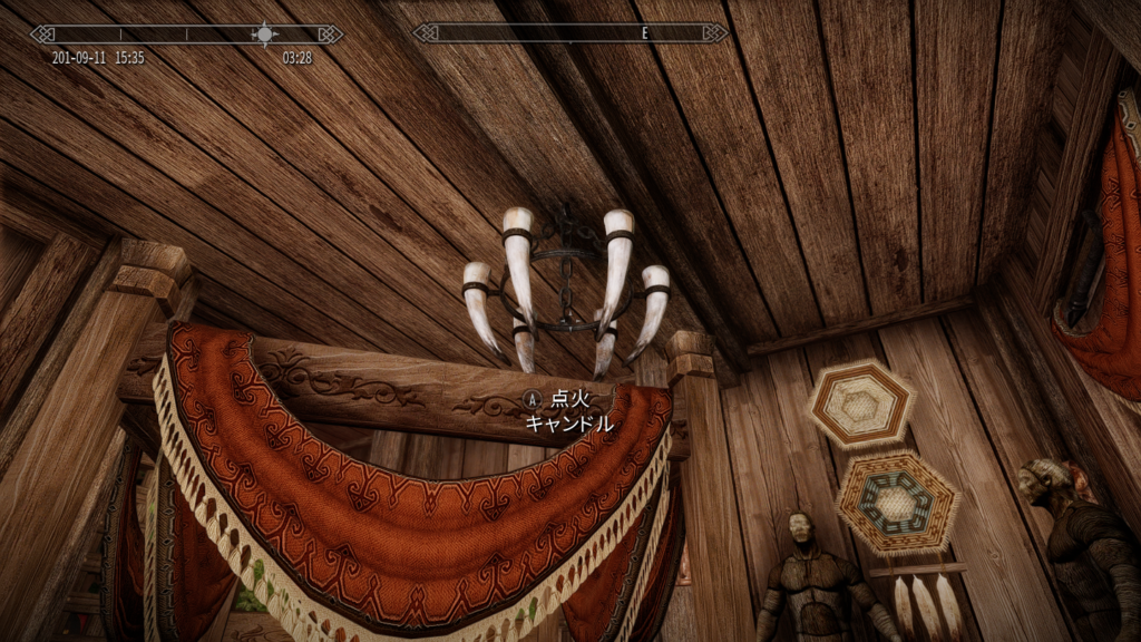 屋内の各所に、点火/消火できるキャンドルやシャンデリアがあります。薪やその他のアイテムを消費せずに明かりを灯せます。