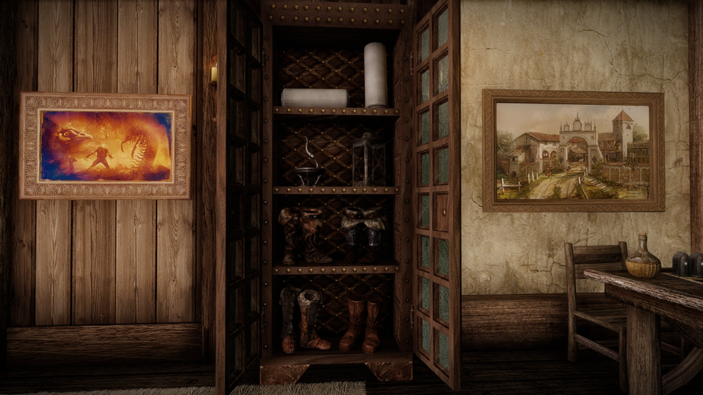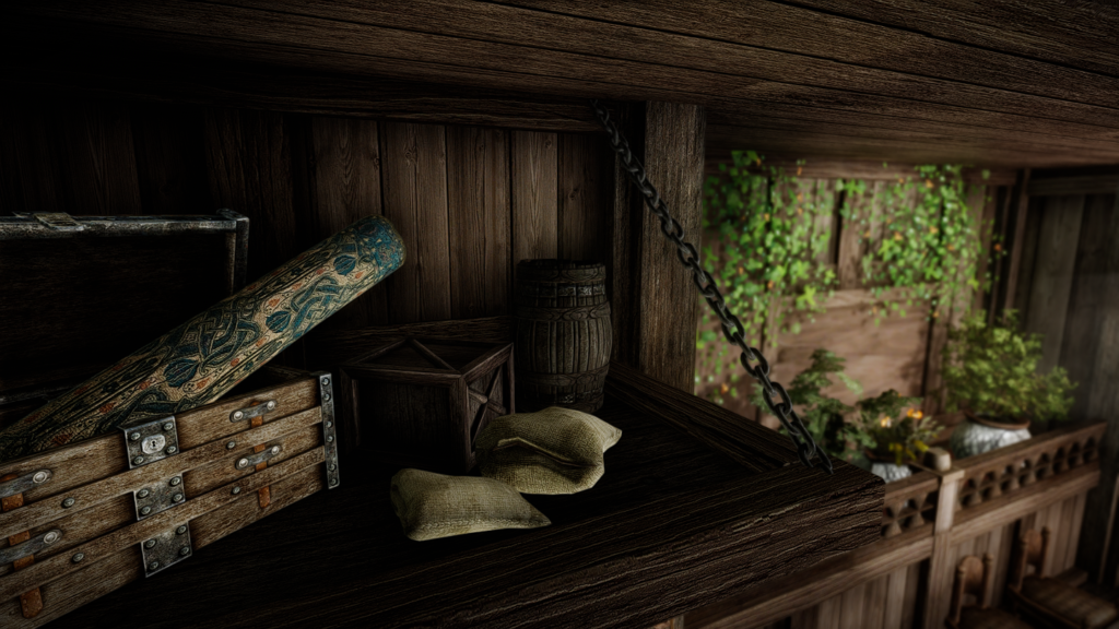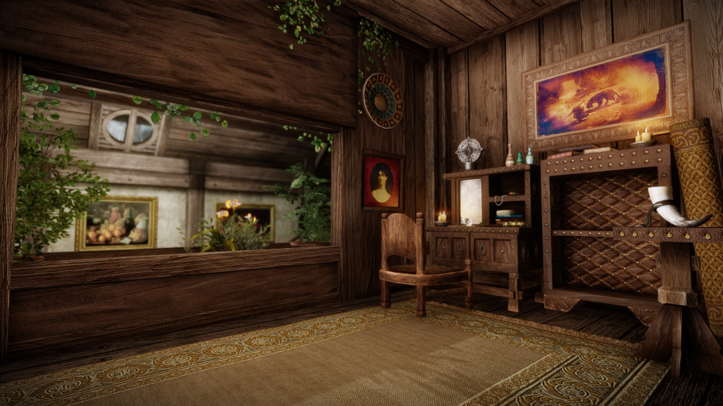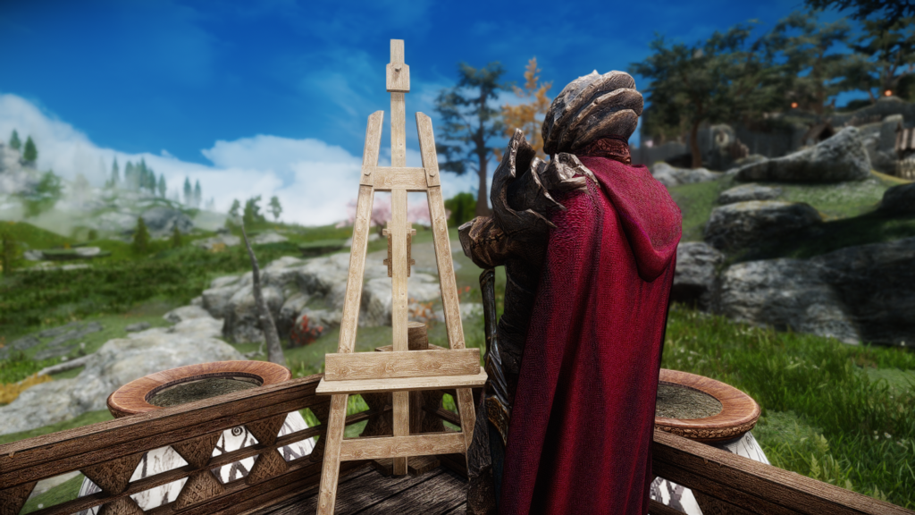 屋外に置いてあるイーゼルを見ていて、これまた同じ作者様のMODである「Mindrot’s Rest」の家を思い出しました。屋外に飾ってある絵画が、鍵の場所のヒントになっているMODです。