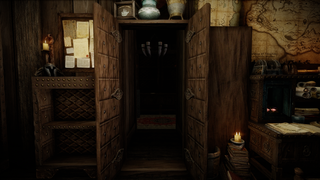 いわゆるおま環かもしれませんが、タンスの扉の表示がおかしい場合、下記のリソースMODの同ファイルで上書きすると解消されるかもしれません。オプションにSE版のものがあります。