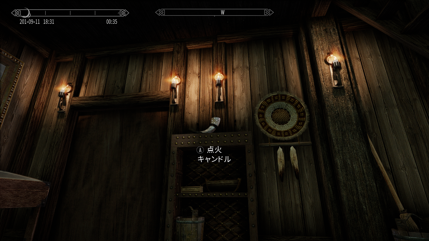 屋内の各所に、点火/消火できるキャンドルやシャンデリアがあります。薪やその他のアイテムを消費せずに明かりを灯せます。