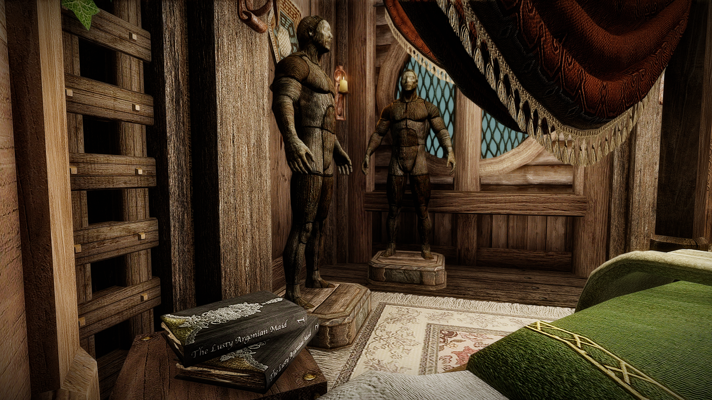 祠やアルゴニアンの侍女の1~2巻がそっと置かれています。窓際にはマネキンさんもいます。