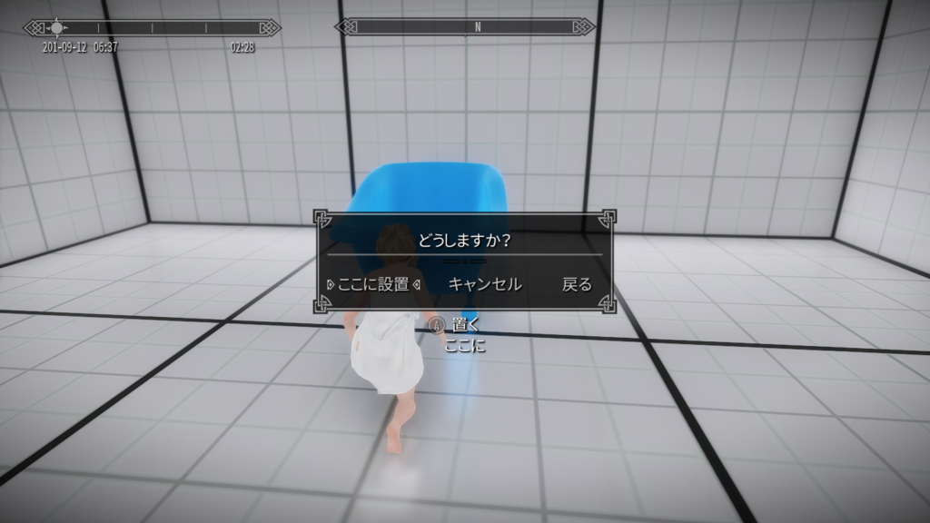 表示されたポップアップから「ここに設置」を選ぶとアイテムが設置されます。「キャンセル」で設置をやめ、「戻る」で位置を調節し直せます。