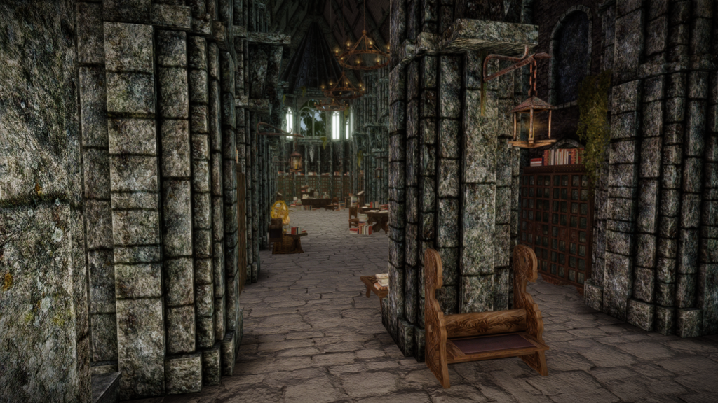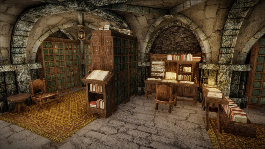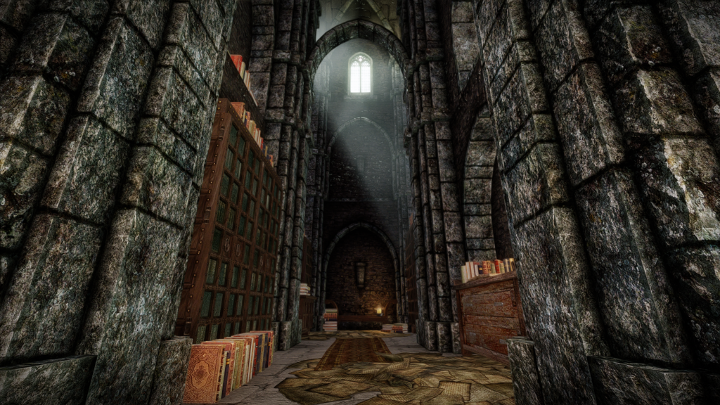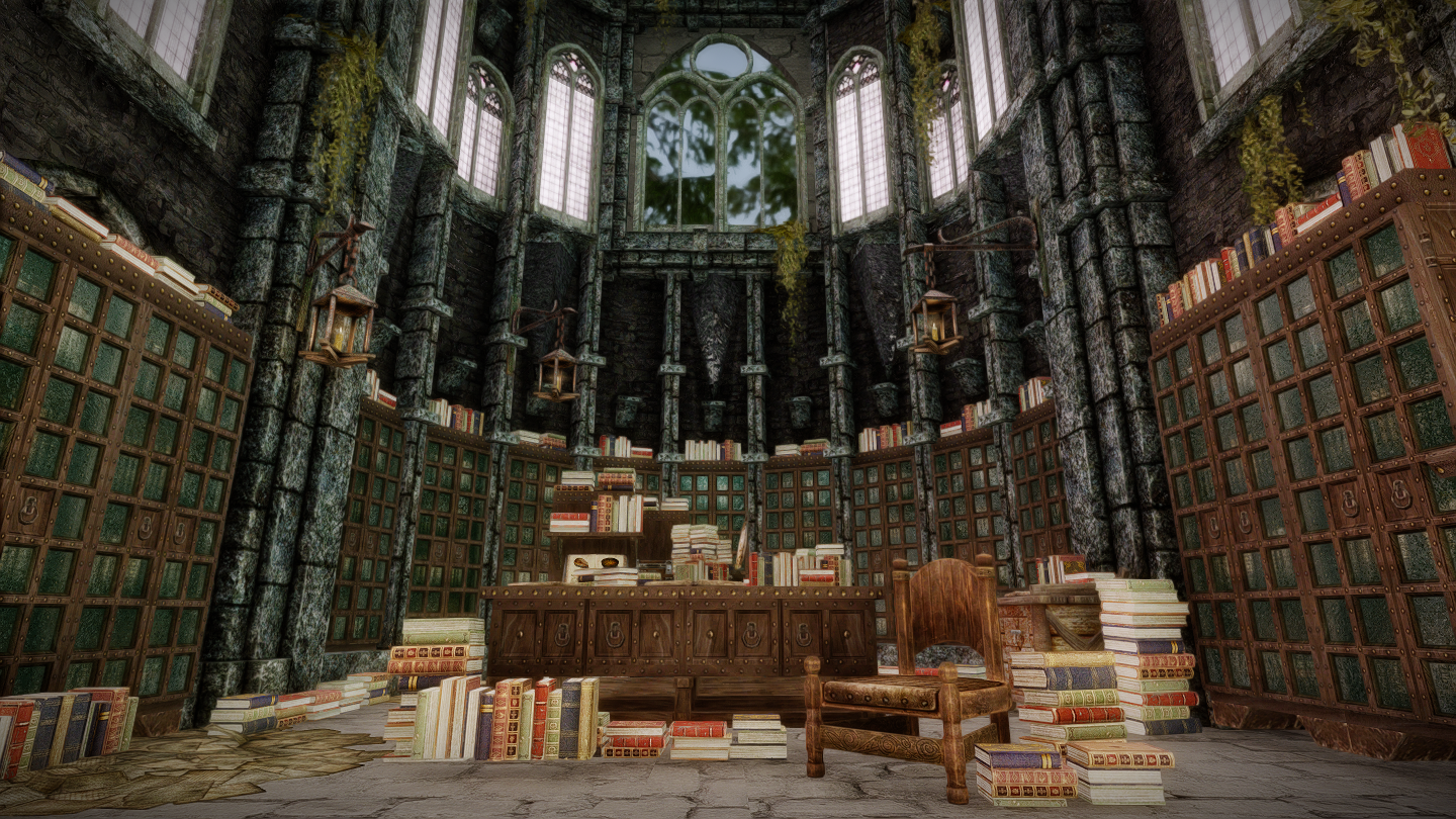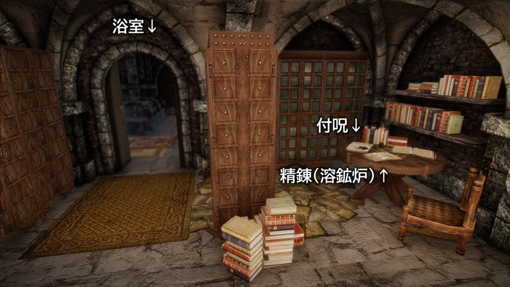 本(プレイヤーがゲーム内で読める書籍)はそれぞれ書棚に納められています。図書館やウィンターホールド大学のアルケイナエウムに近い感じでしょうか。
