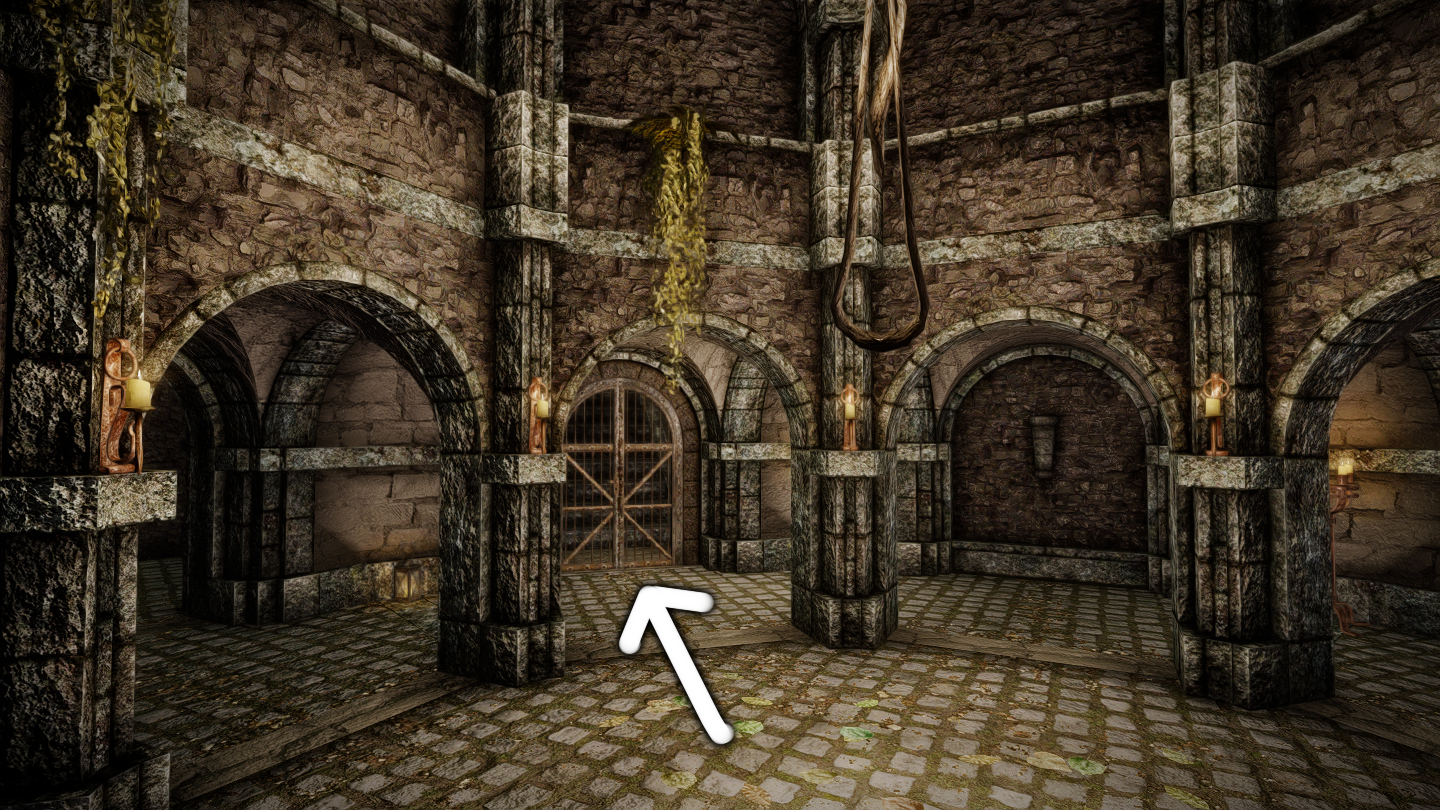 鍵を入手する必要があります。井戸から降りてやや右後ろにある、崩れた部屋の奥に鍵が落ちています。