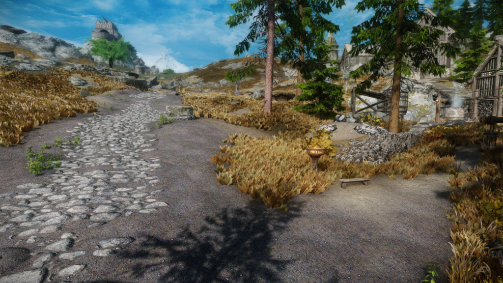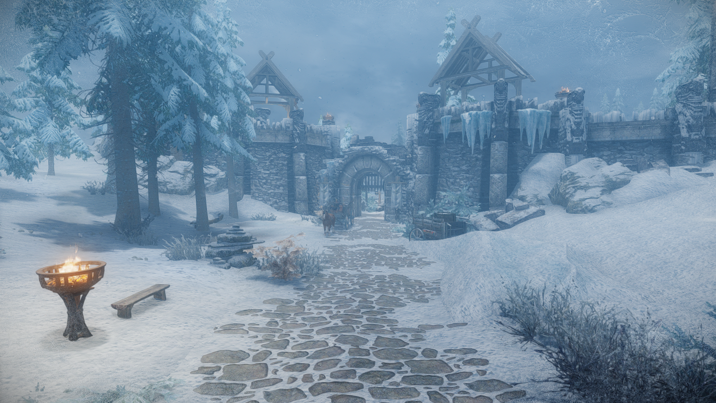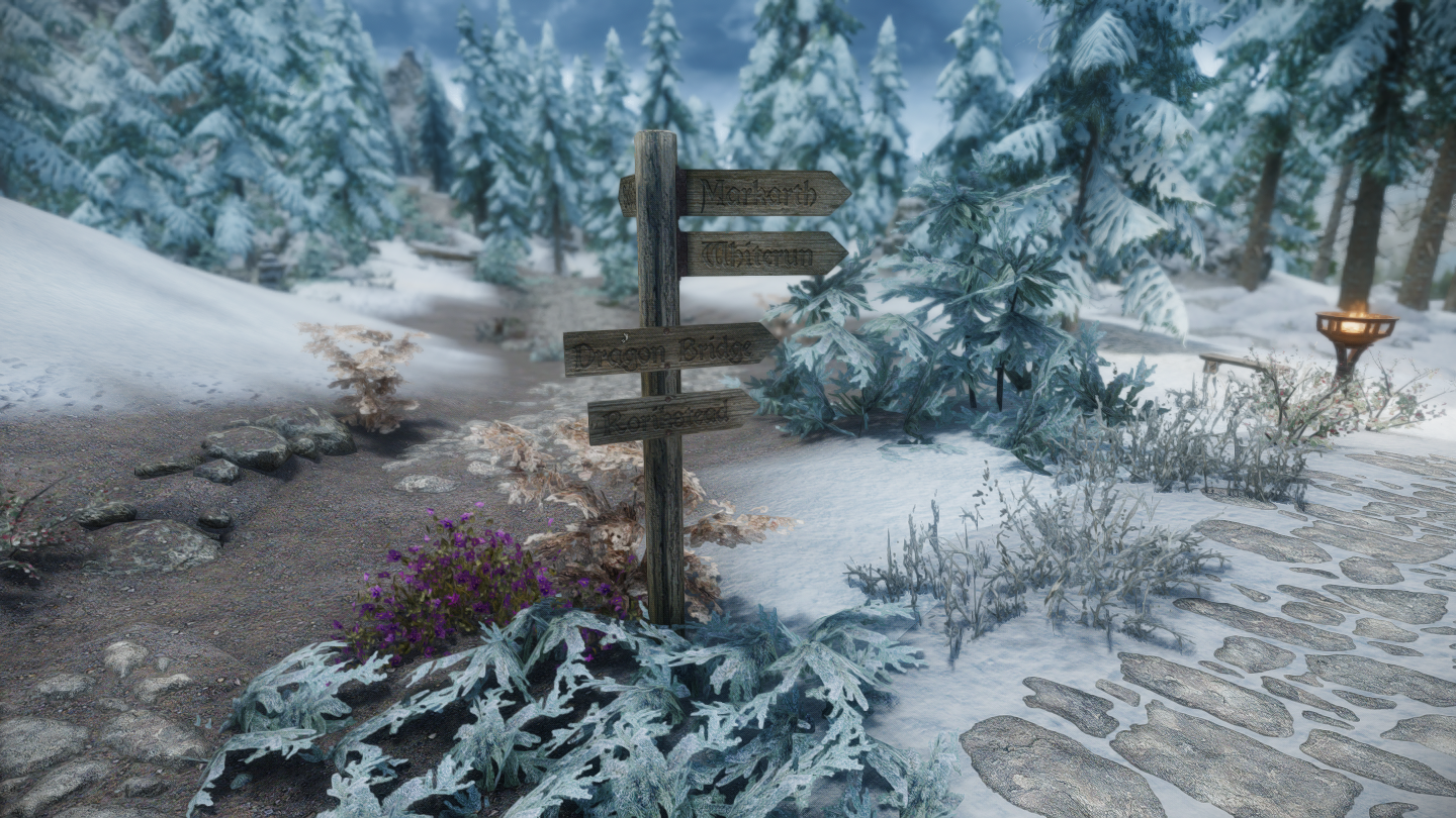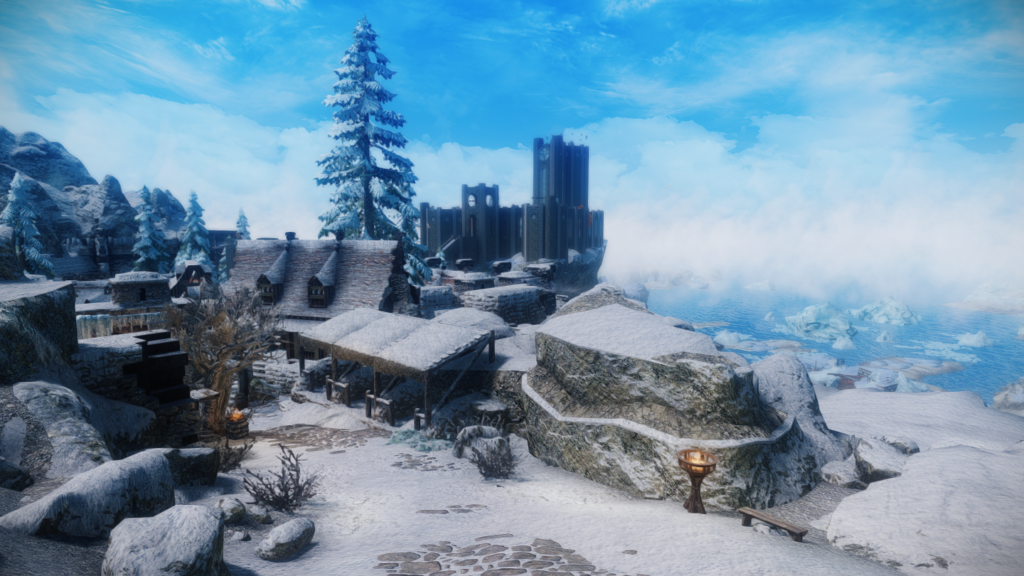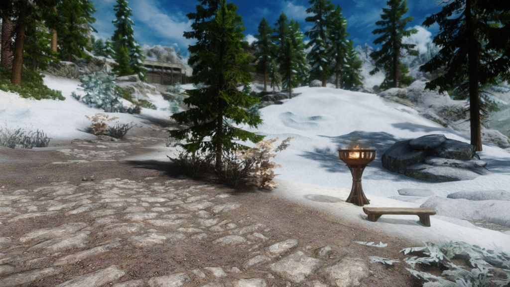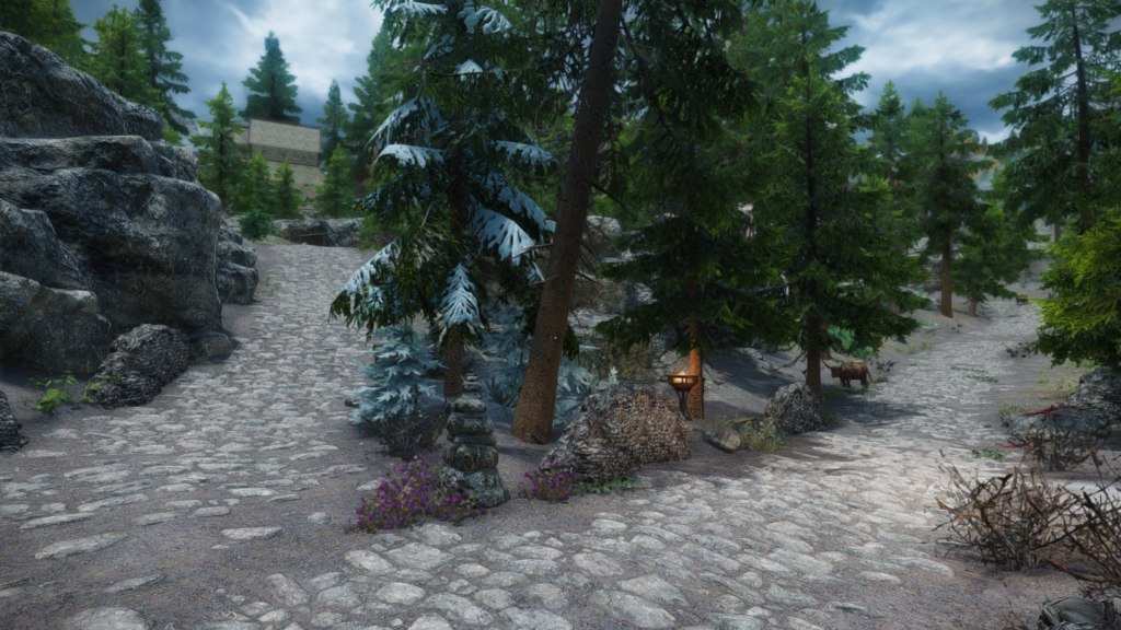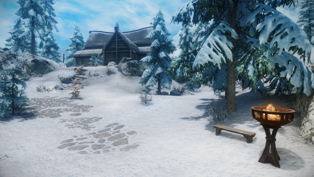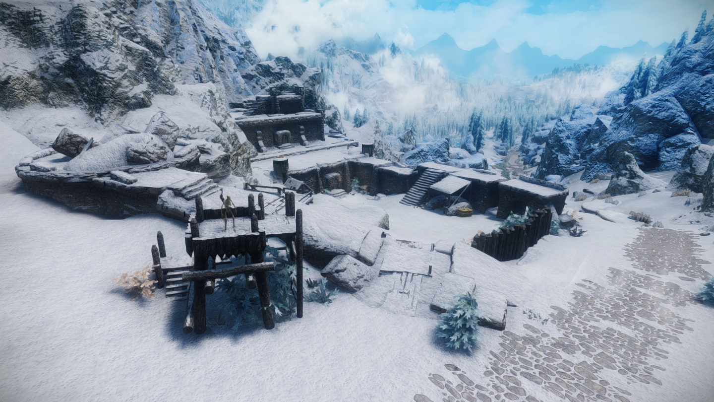ウィンターホールドとウィンドヘルムの中間辺りにある山沿いの街道にぽつんとあります。カスタブ砦やスティルボーン洞窟、別MODの宿などが近くにあります。
