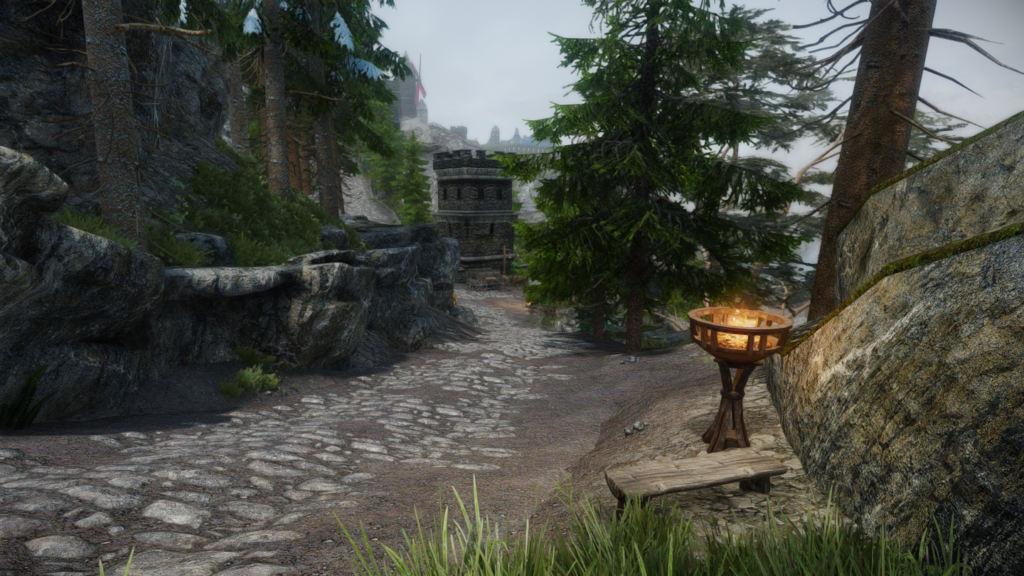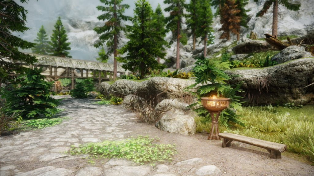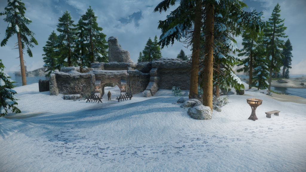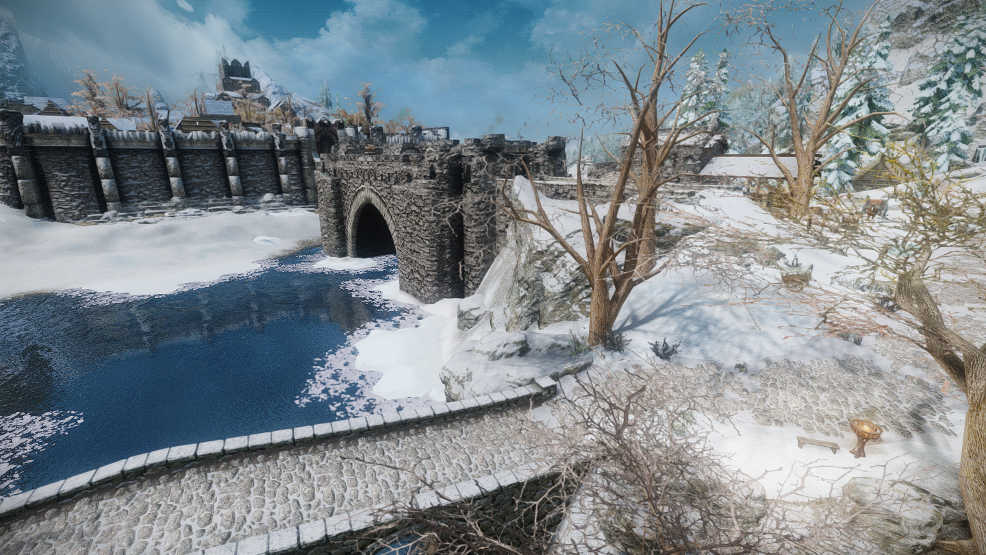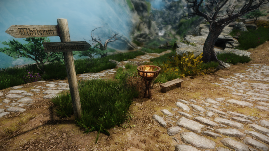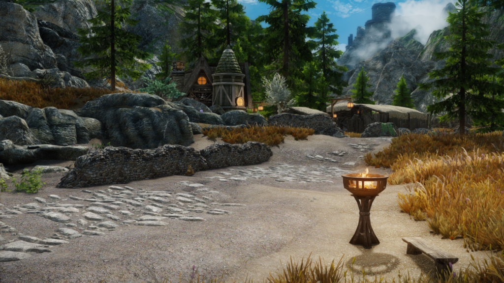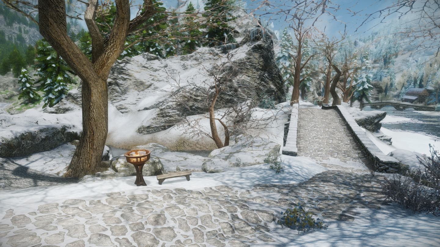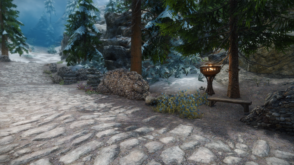 ウィンターホールドとウィンドヘルムの中間辺りにある山沿いの街道にぽつんとあります。カスタブ砦やスティルボーン洞窟、別MODの宿などが近くにあります。