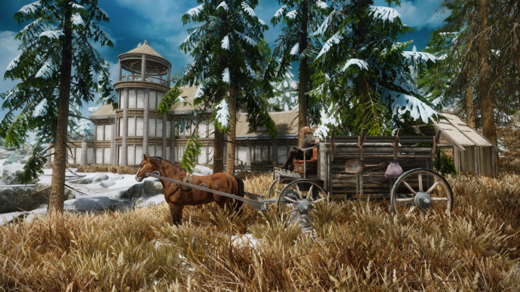 スカイリムの各地に馬車の停留所を追加するMODです。バニラで停まらない村や集落だけでなく、ドーンガード砦や番人の間、Heartfireで建築する各家の近くなどにも停車します。