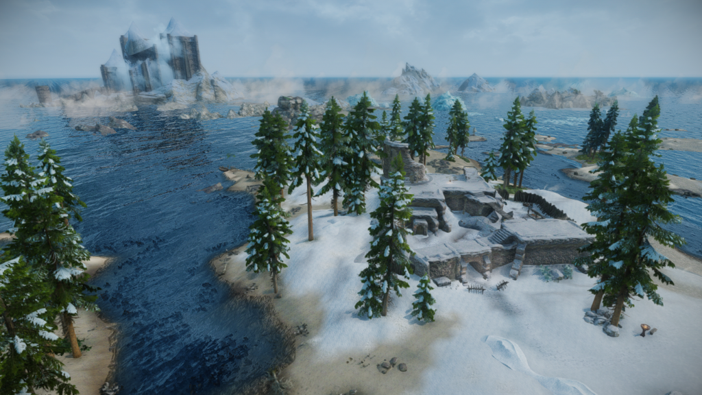 ノースウォッチ砦の前に停まります。ここから海岸まで進めば、ヴォルキハル城へ渡れるアイスウォーター桟橋もあります。馬車を待っている間に敵を倒すとボーナスポイントが入るそうです。