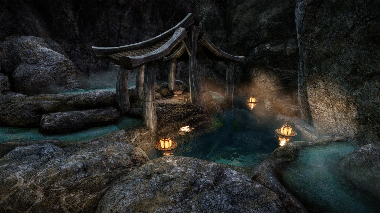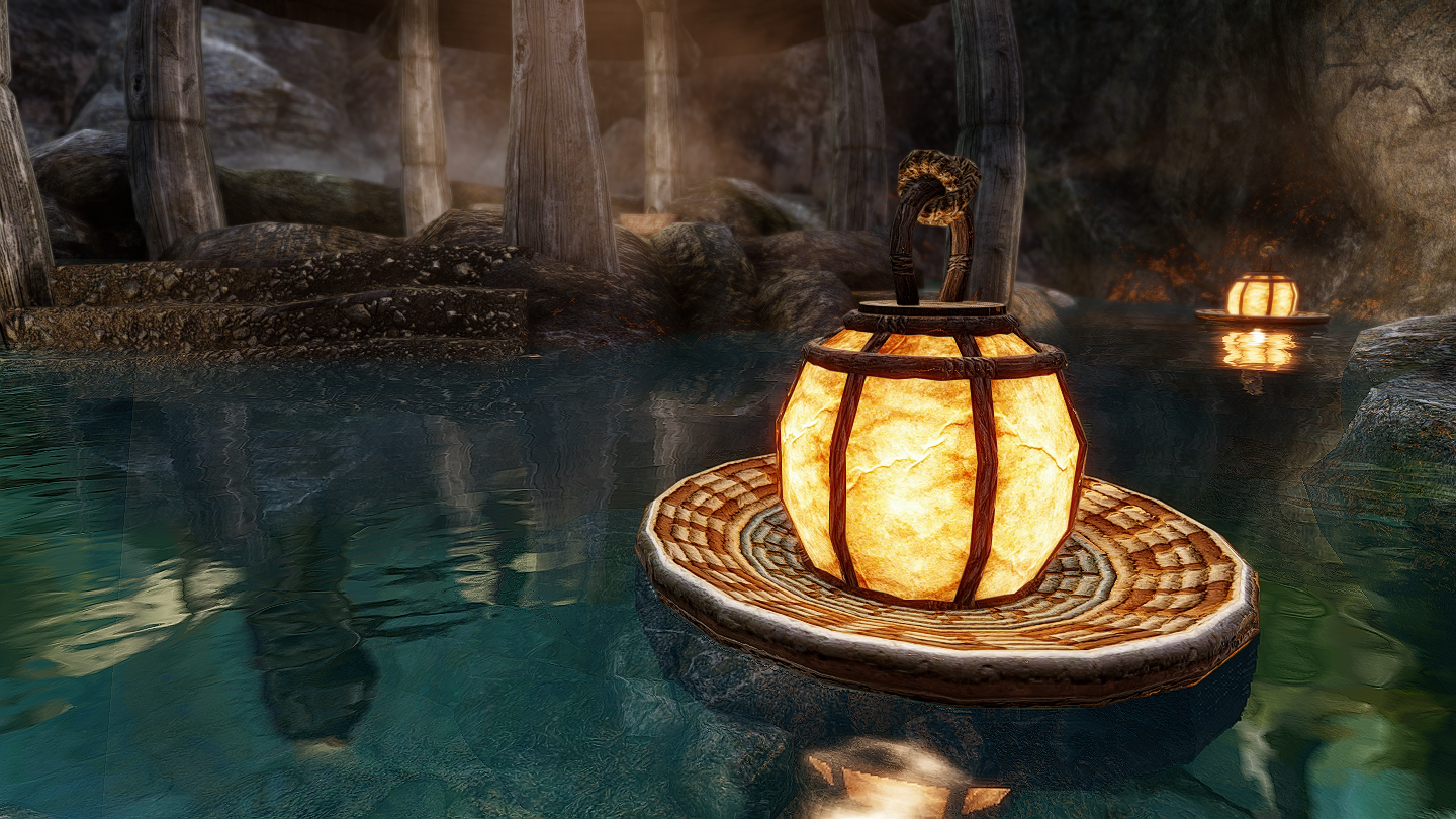 要塞の中に、身を清められそうな水場があります。浮かべられたランタンが幻想的です。