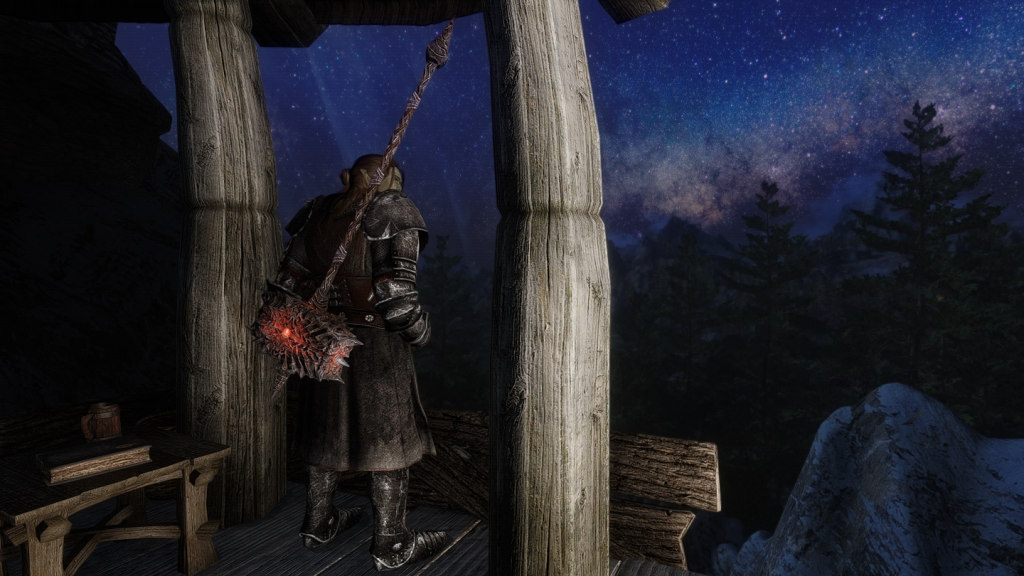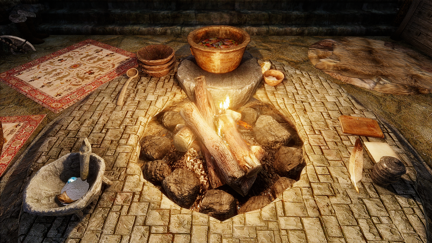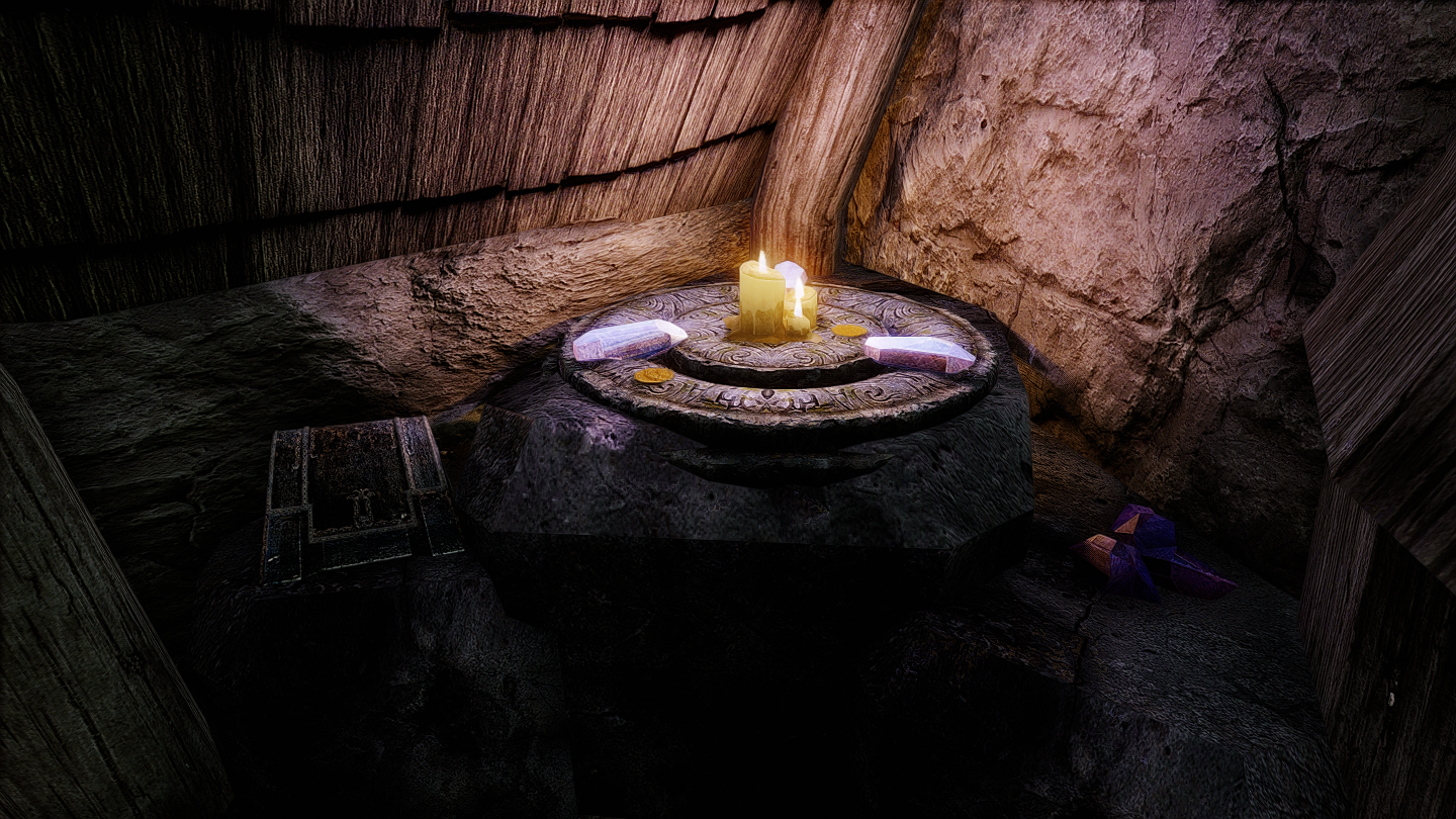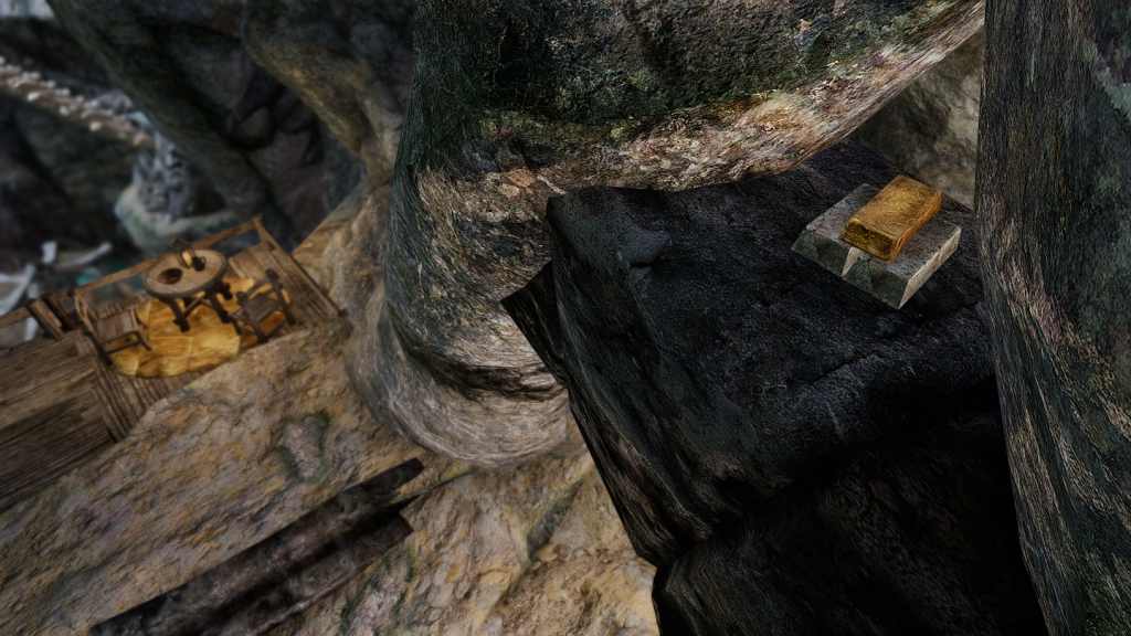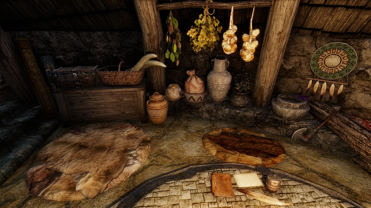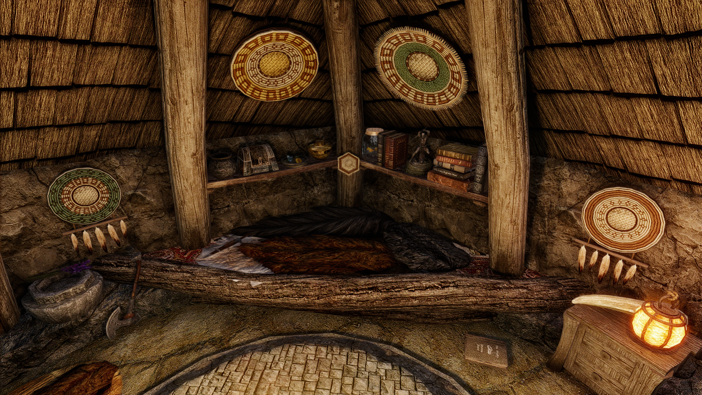 ベッドは、アクティベートの位置によって腰かけることもできます。また、周辺にある書籍はそれぞれゲーム内で実際に読むことが可能です。主にデイドラやオブリビオン、オークなどに関する書籍が置かれています。