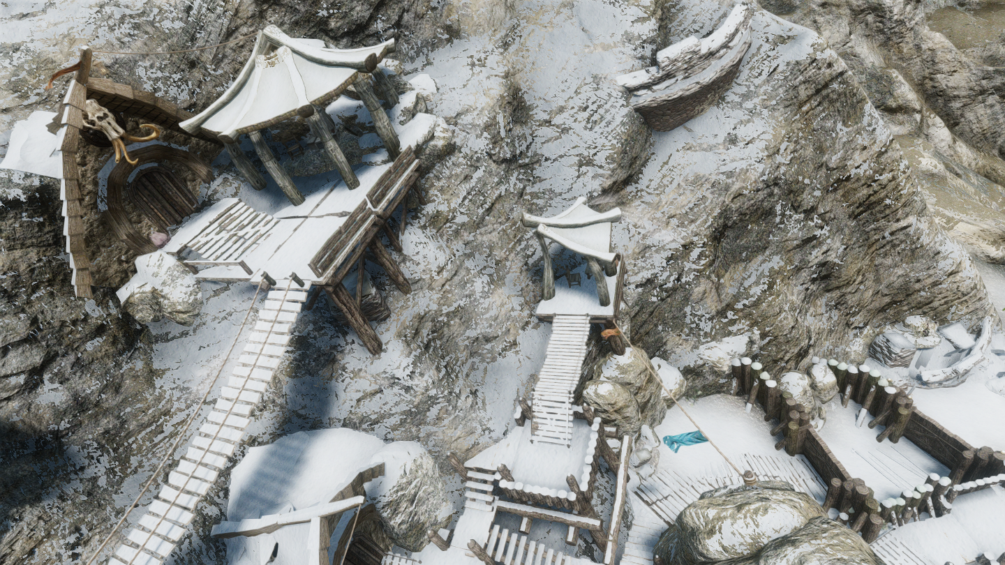 ダイナミックで開放感がある要塞です。見どころが多く、道具や木箱などが無造作に置かれているシンプルなエリアでも絵になるなぁと思いました。
