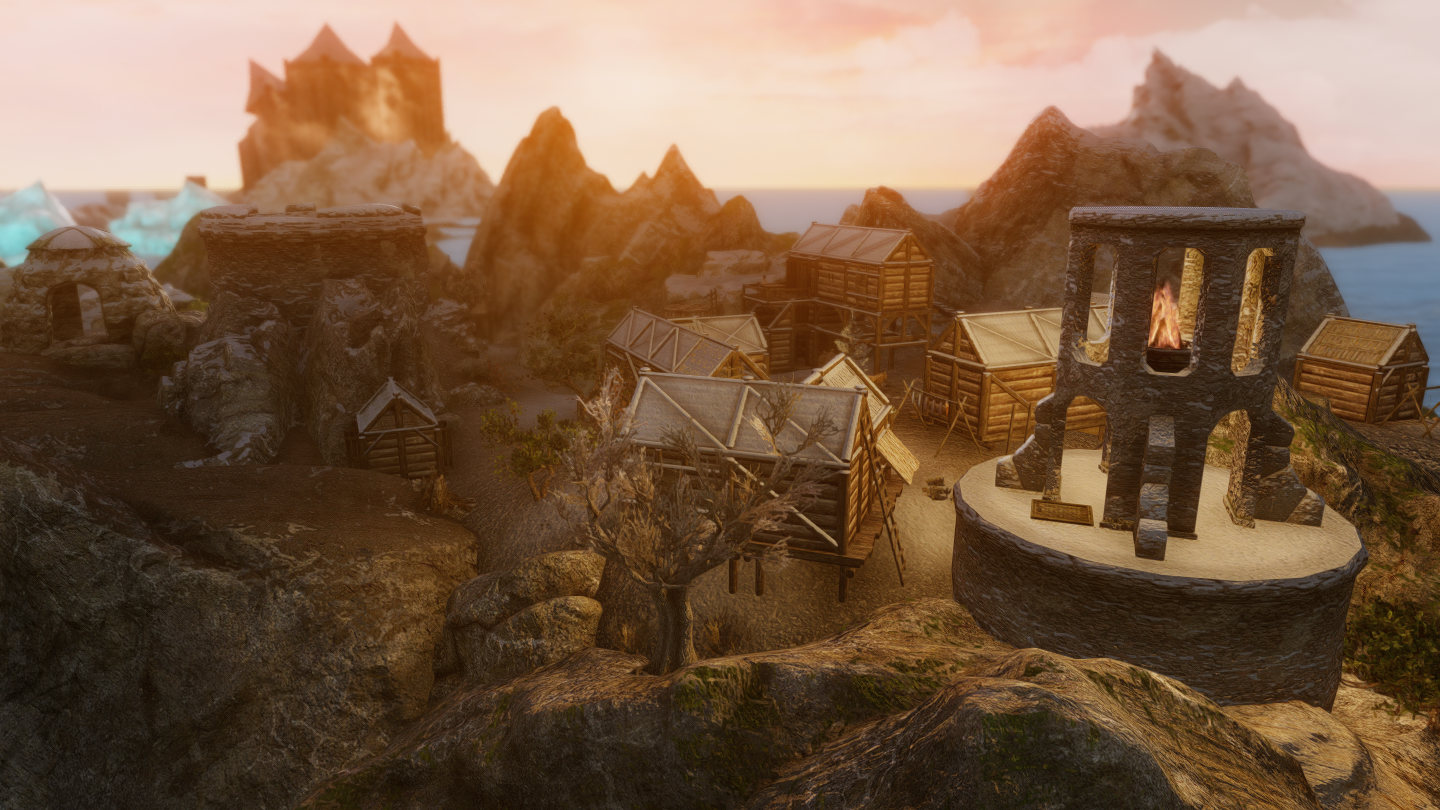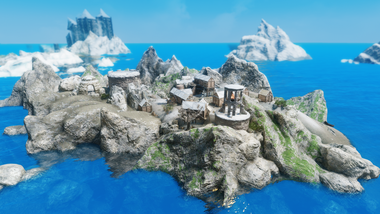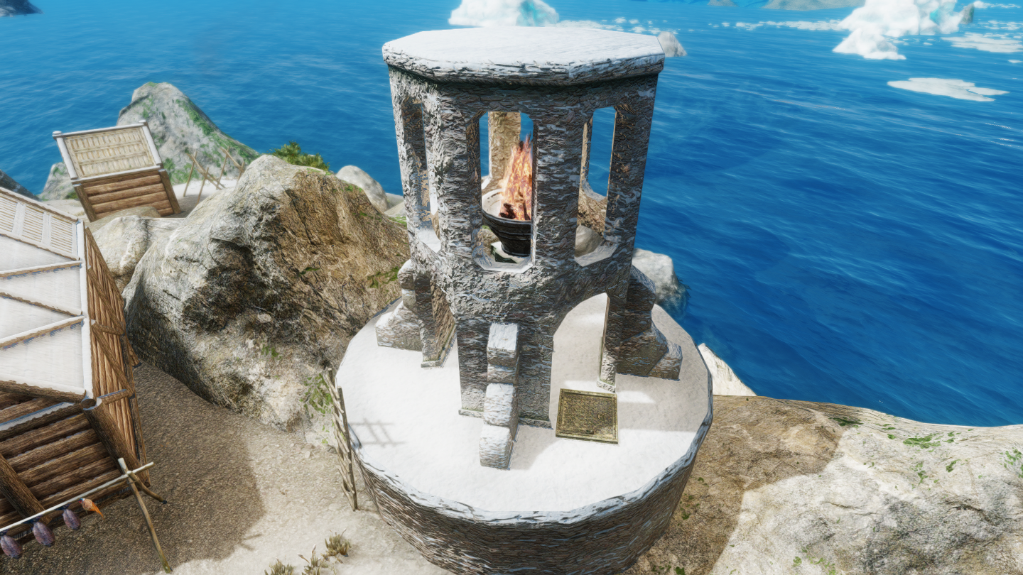 ハーフィンガルの北西部、ヴォルキハル城の東側にある島の一つを「セントレスト島」として改装し、人が住めるようにしたMODです。寝具や生産設備、露天風呂などが付いた島になっています。