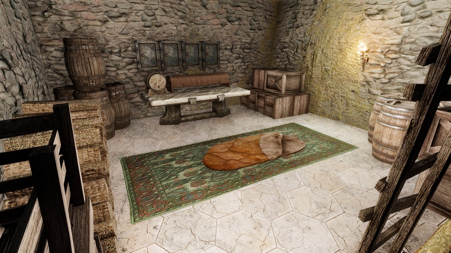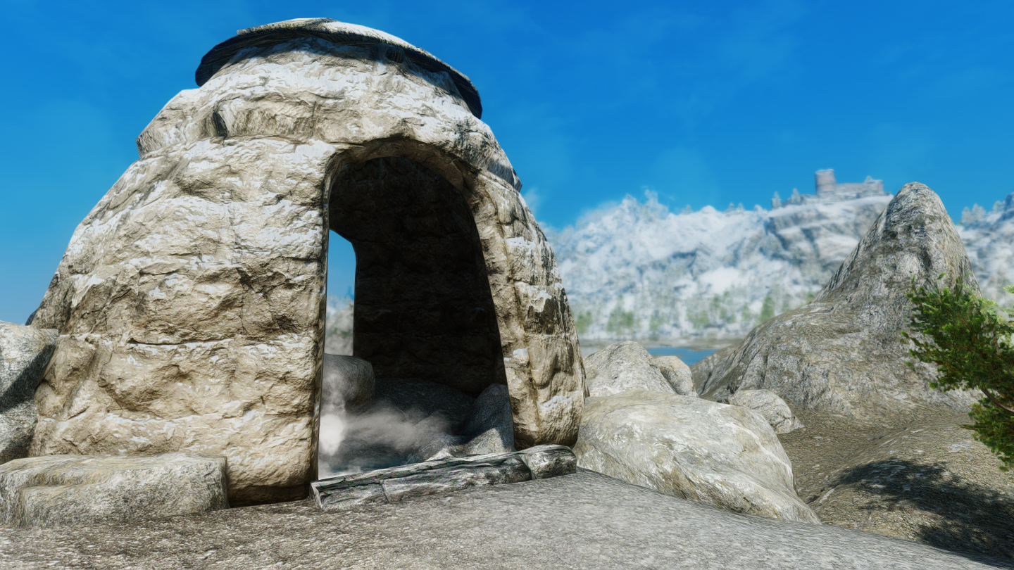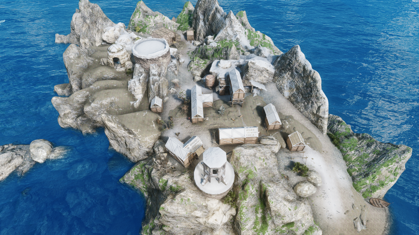ハーフィンガルの北西部、ヴォルキハル城の東側にある島の一つを「セントレスト島」として改装し、人が住めるようにしたMODです。寝具や生産設備、露天風呂などが付いた島になっています。