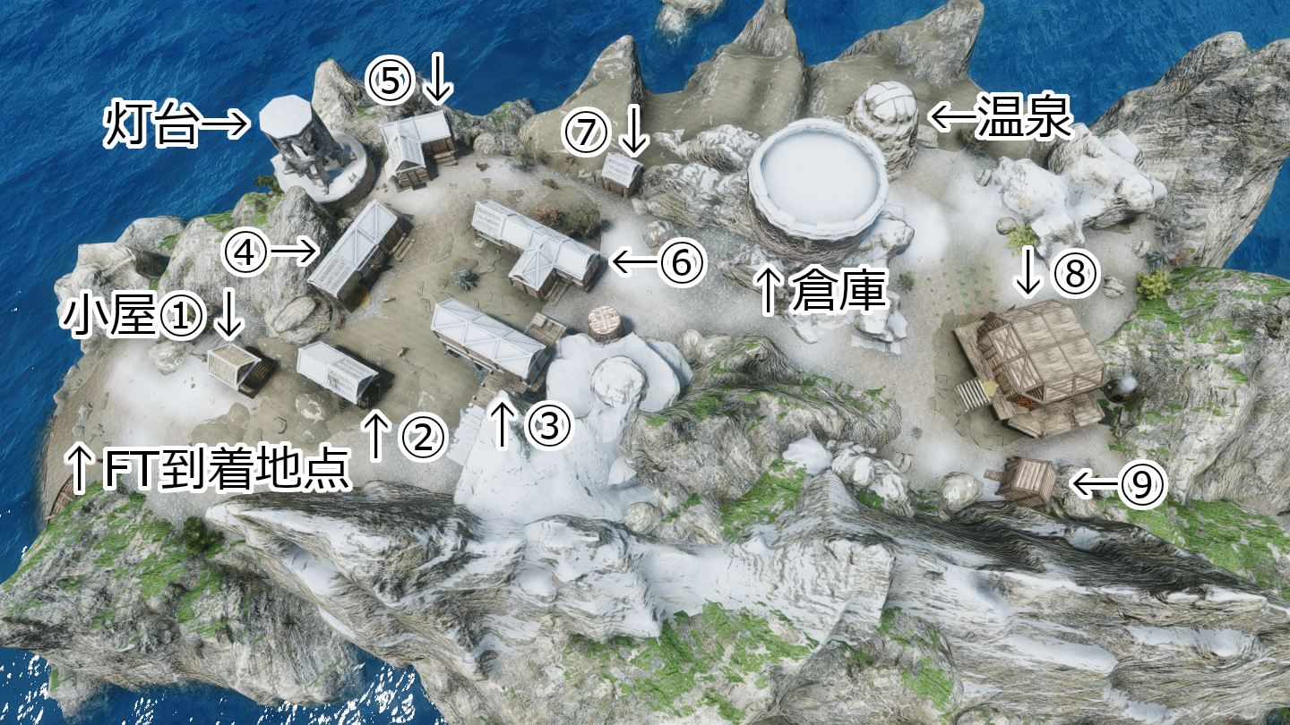 MOD導入直後からFT可能です。島はヴォルキハル城の東側、もしくはオルファン・ティアー号の北側にあります。