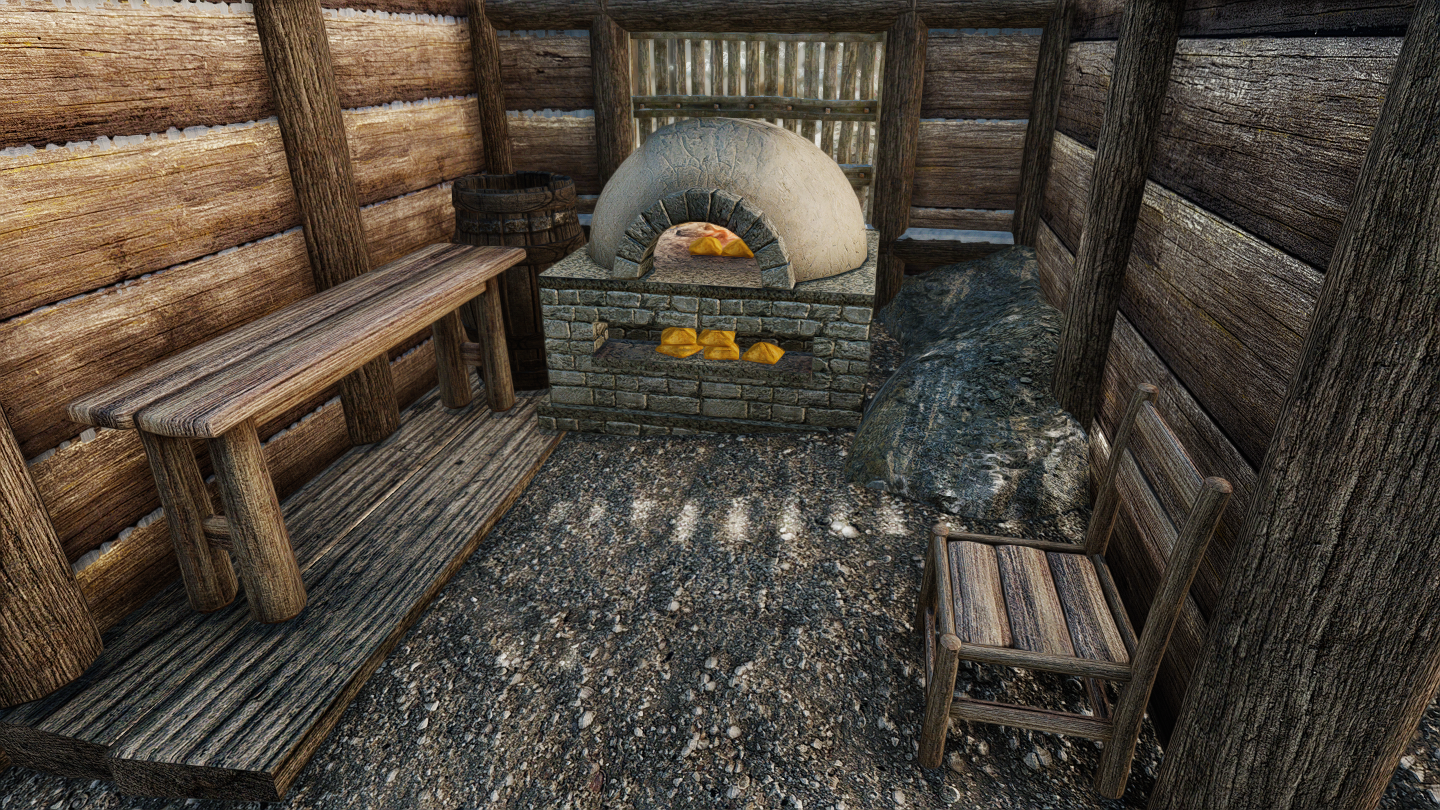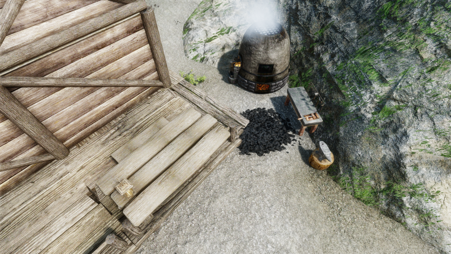 他にも屋外に、薪割り台/皮なめしの棚/溶鉱炉/作業台/金床/鶏/ヤギなど。
