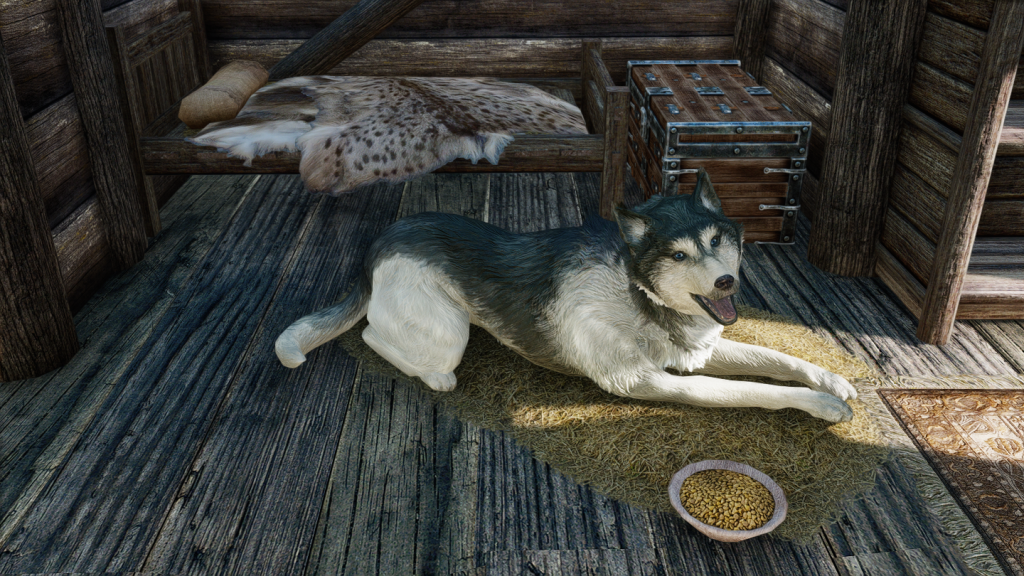 内風呂スペースを作ってみたり、ペット用の簡易ベッドを置いたりしています。ハウジングセンスのなさについてはお許しを…