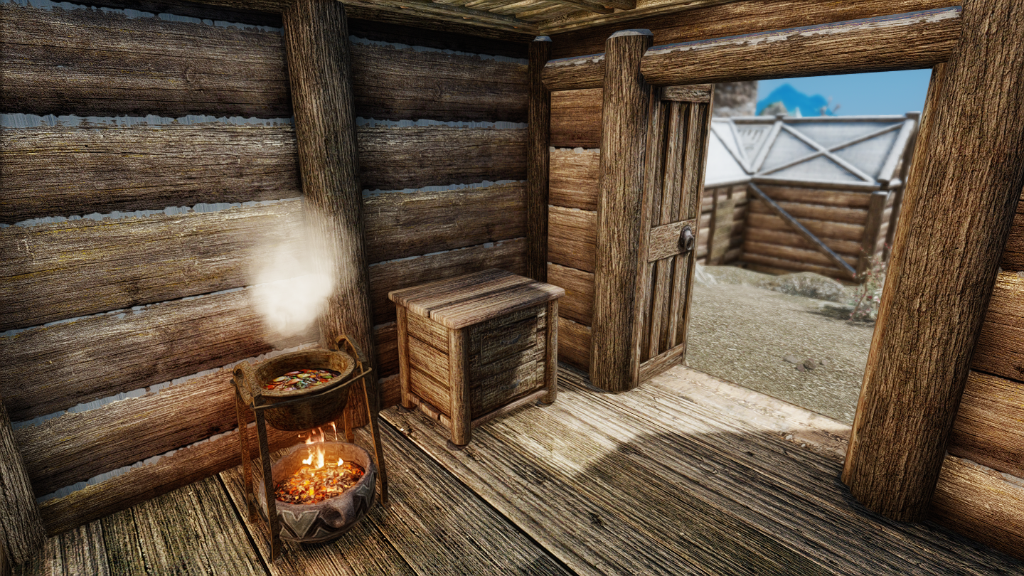 他にも屋外に、薪割り台/皮なめしの棚/溶鉱炉/作業台/金床/鶏/ヤギなど。