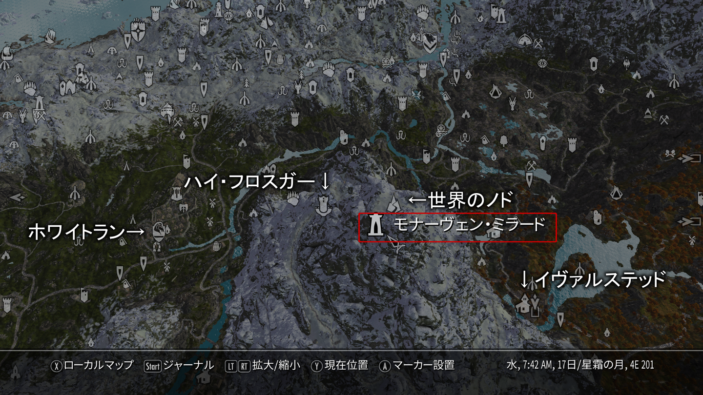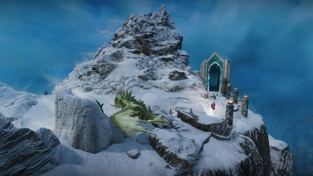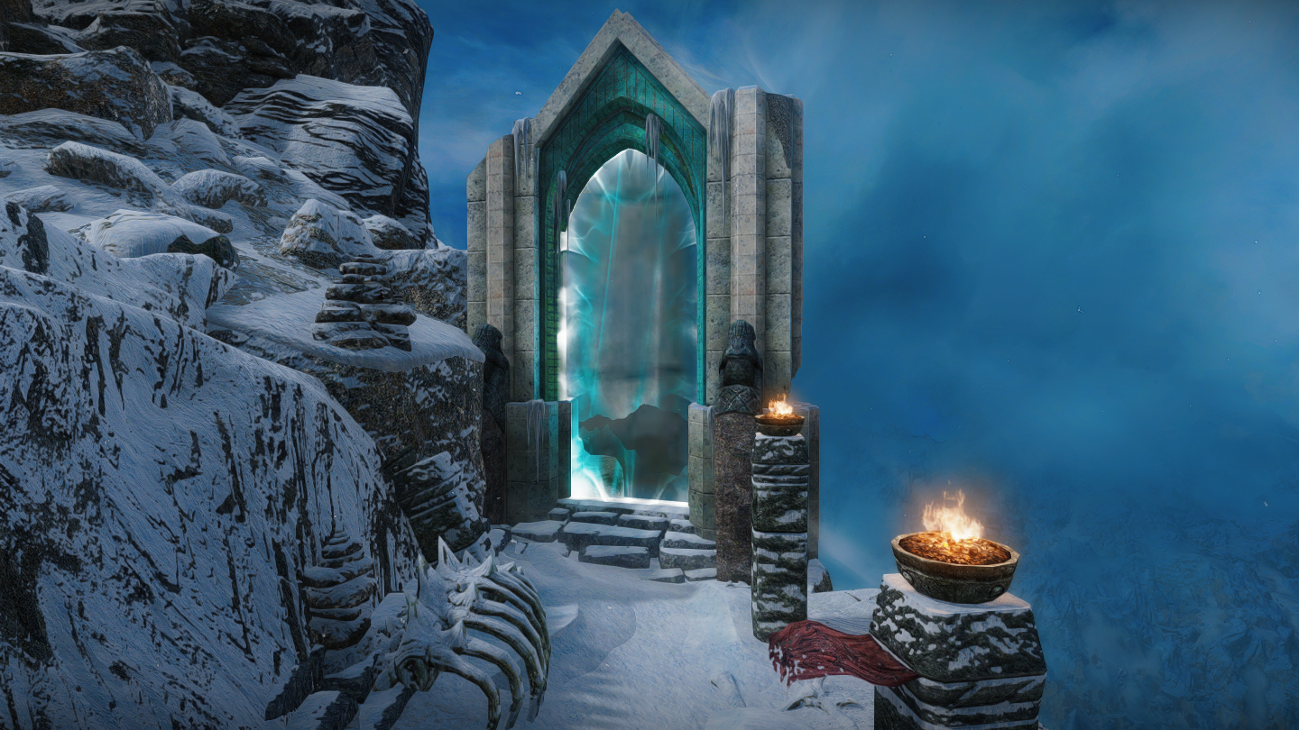 世界のノドはメインクエストで向かう場所ではあるものの、コンソール等を駆使すればメインクエスト未クリア時や非ドラゴンボーンキャラも山頂まで登ったりポータルの先へ進むことは可能です。が、アルドゥインを倒した後に導入することをお勧めしますとのことです。