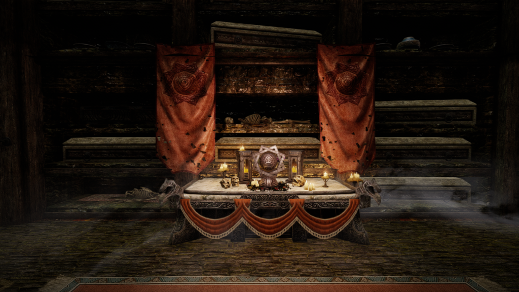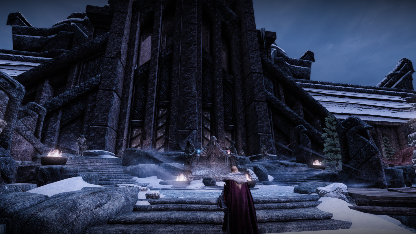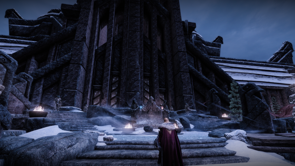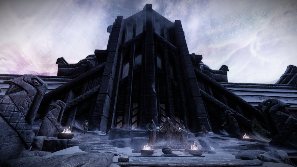 メインクエストでアルドゥインを倒してもエンディングが流れるわけではないものの(そこがスカイリムのいい所でもありますが)、もし流れるとしたらここを背景にエンディングやスタッフロールを見たいと思いました。