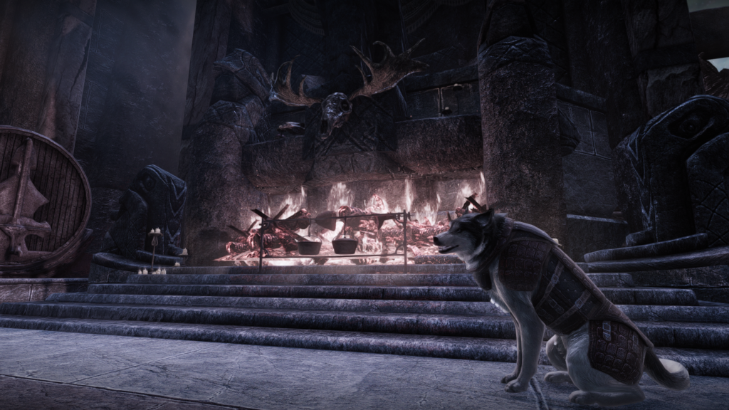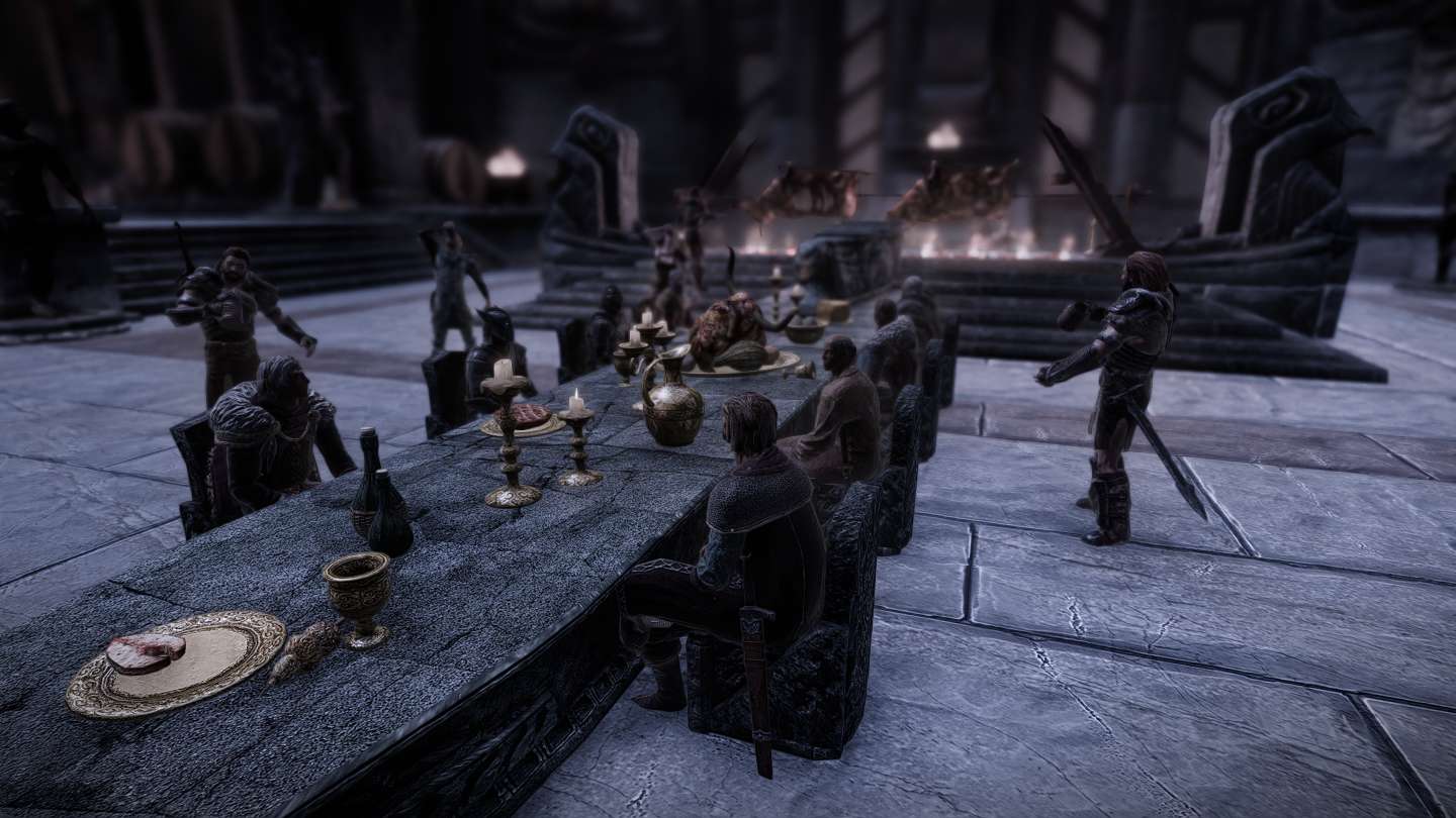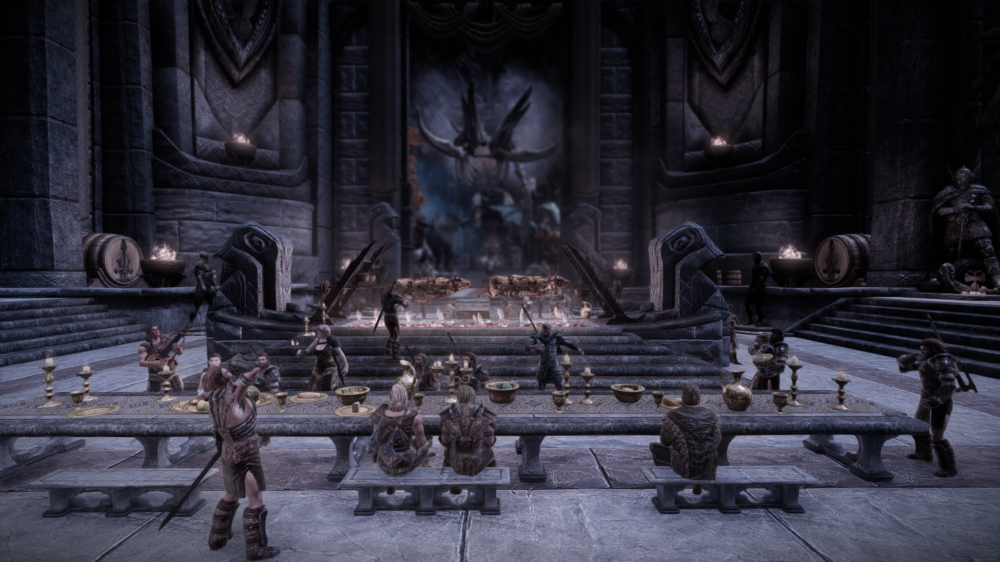 ソヴンガルデの英雄たちや軍用犬など、屋内外にかなりのNPCが滞在しています。ゲーム中に見たことがある名前の御方も。商人NPCである魔術師やバーテンダーは豊富なゴールドを持っています。