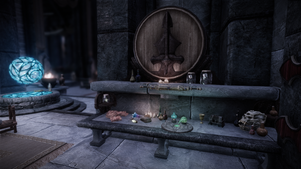 屋内に各ホールドやウィンターホールド大学への転移門が置いてあり、そちらから出ることも可能です。