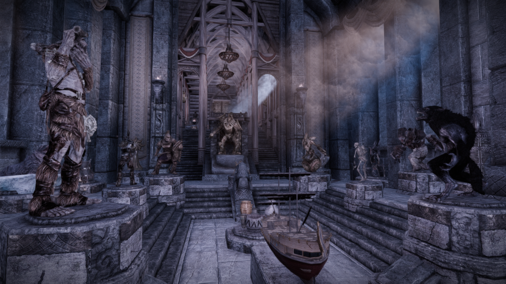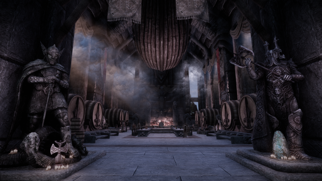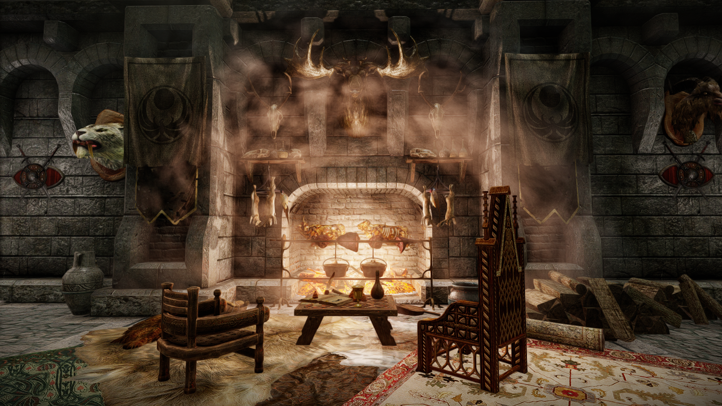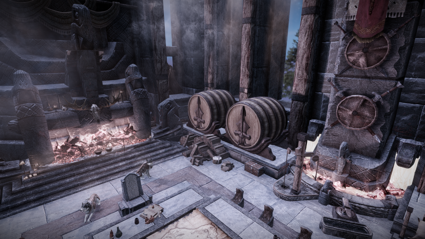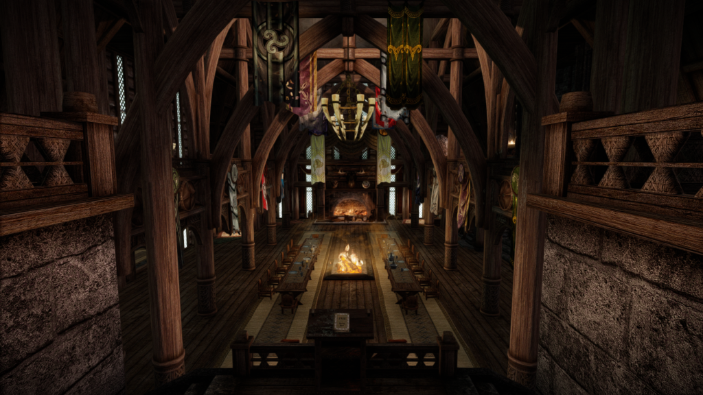 大人数での滞在も可能な、ドラゴンボーン向けの家を追加するMODです。広間・庭園・博物館・戦利品展示場などといった多彩な空間が存在し、スケールの大きさに圧倒されそうな場所となっています。世界のノドに入口となるポータルがあります。