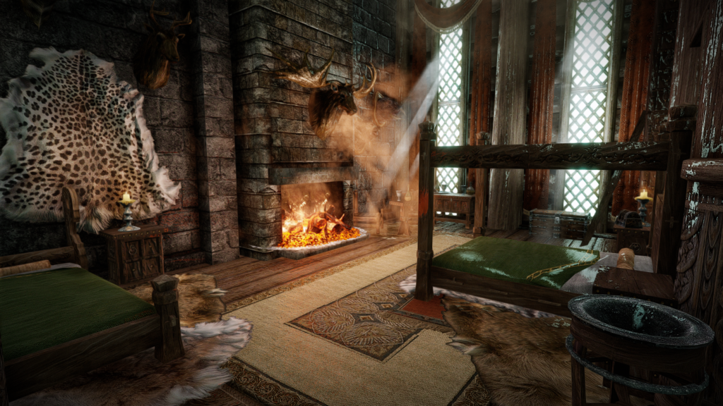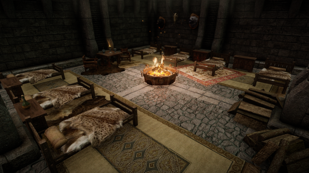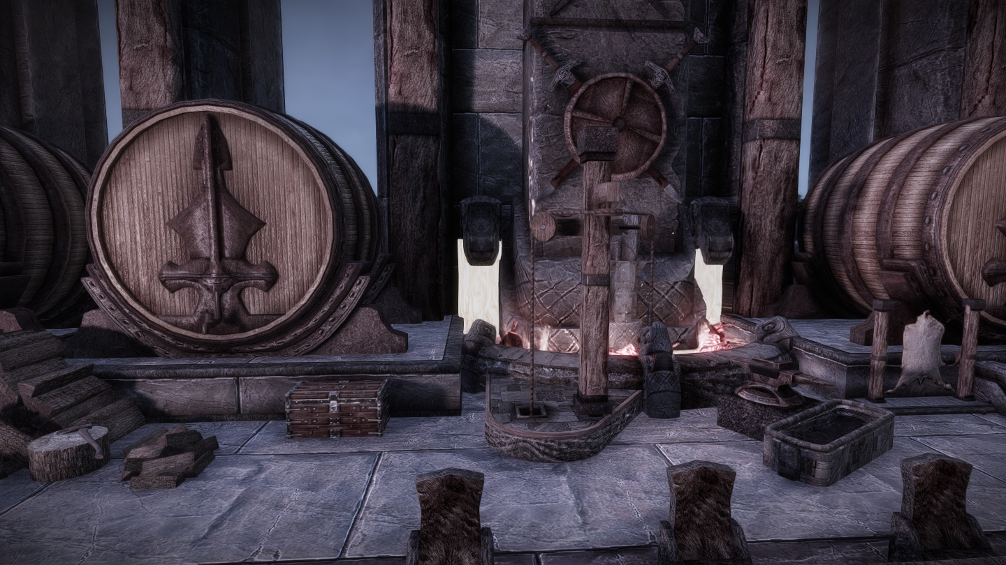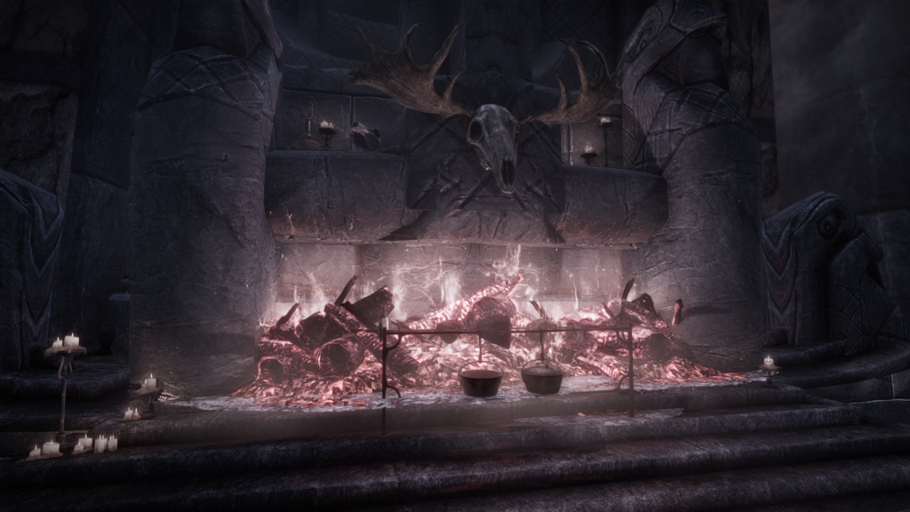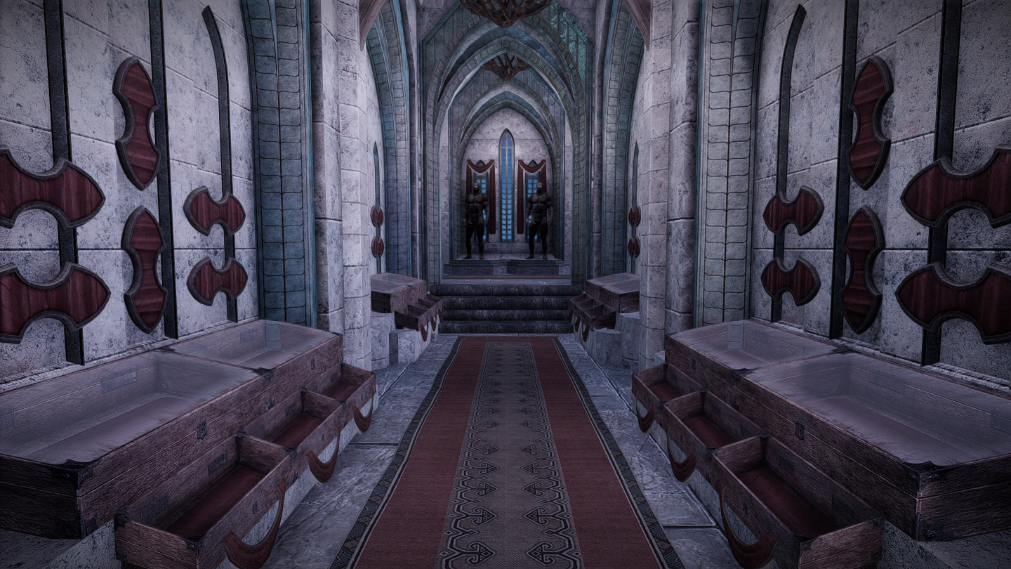 大人数での滞在も可能な、ドラゴンボーン向けの家を追加するMODです。広間・庭園・博物館・戦利品展示場などといった多彩な空間が存在し、スケールの大きさに圧倒されそうな場所となっています。世界のノドに入口となるポータルがあります。
