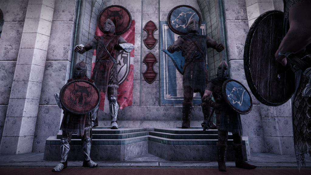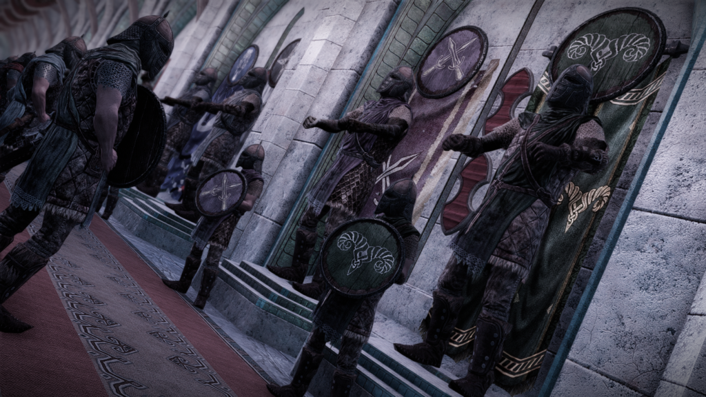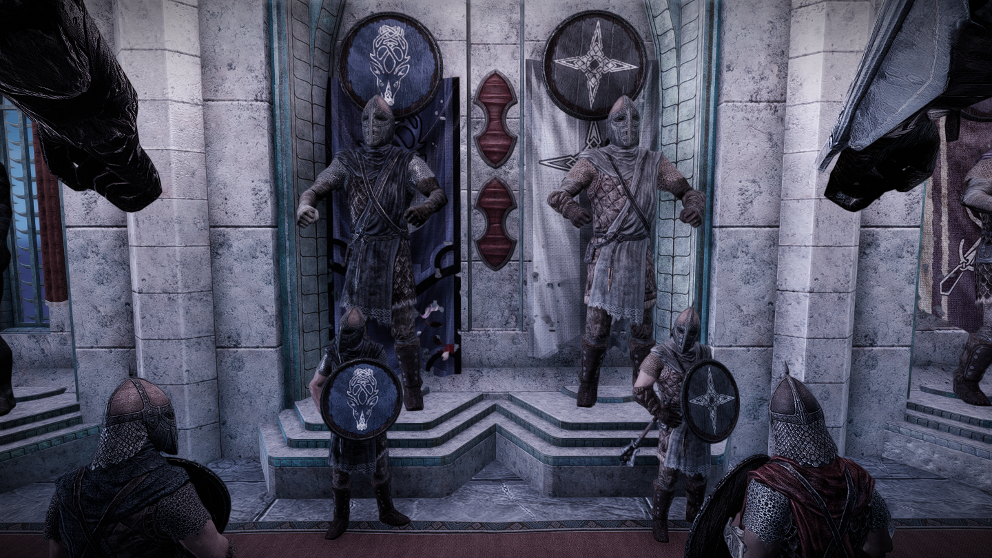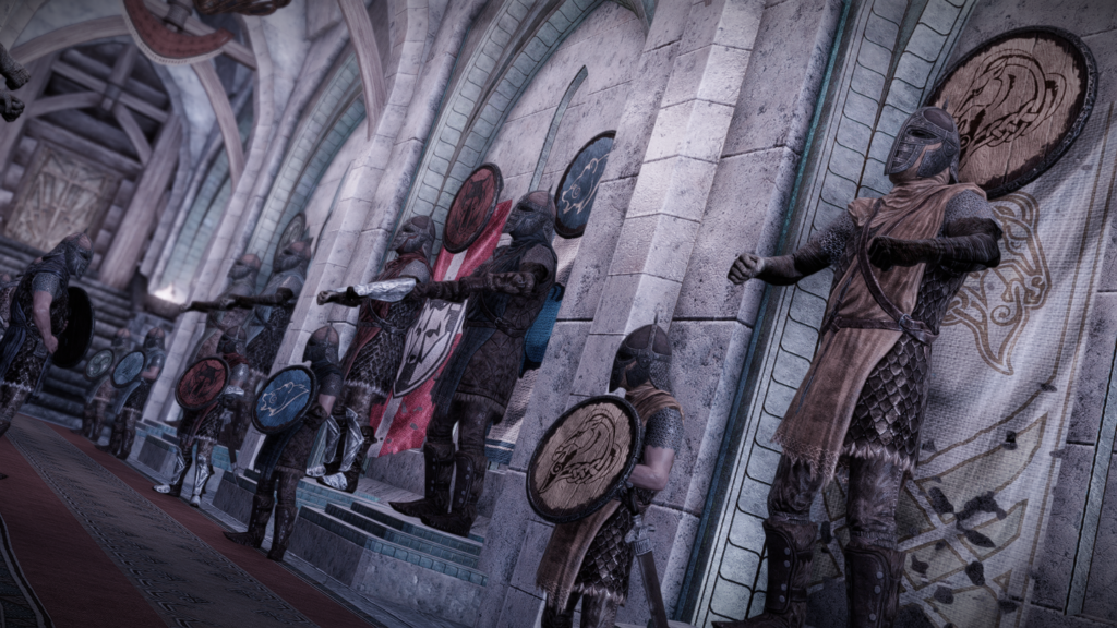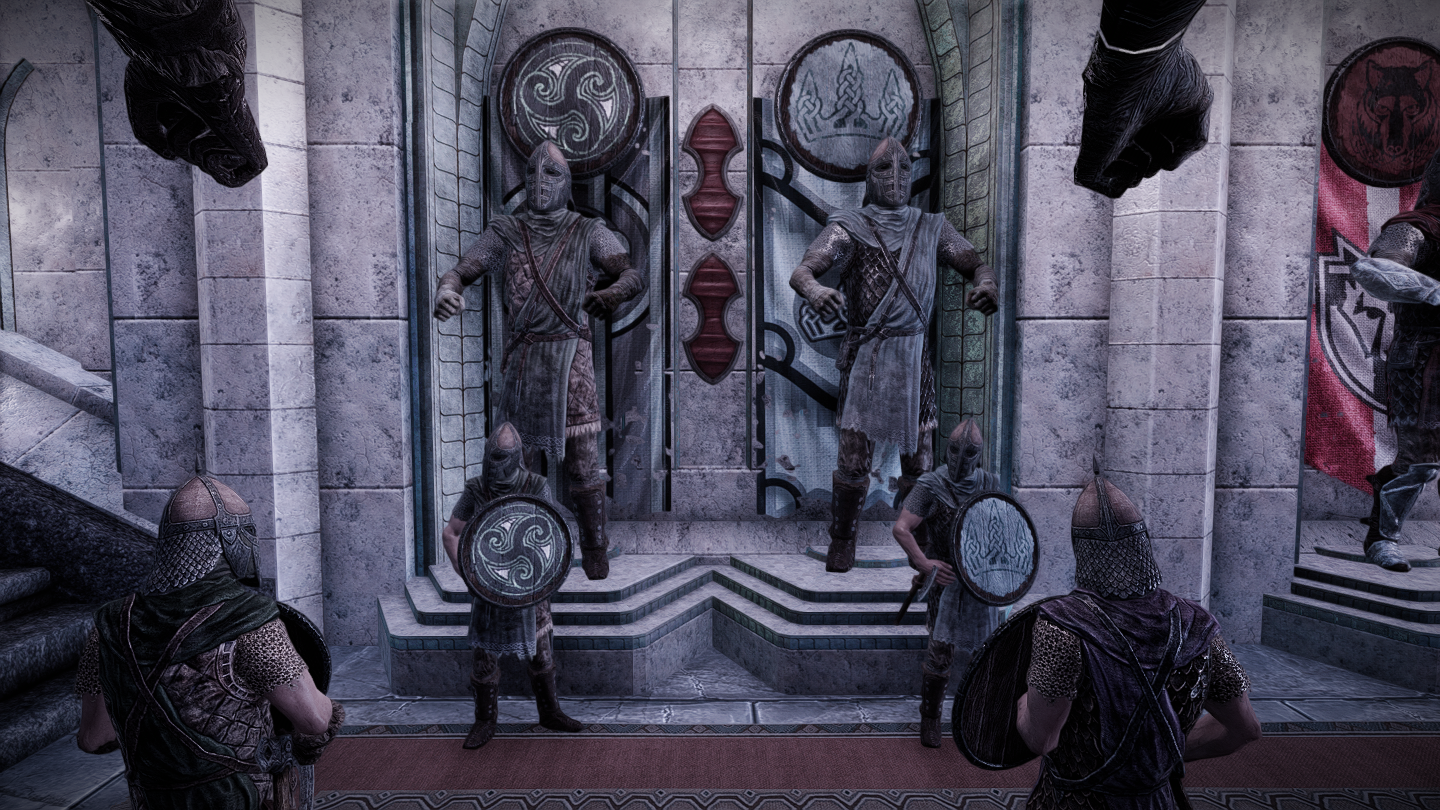 配備されている兵士たちもでかいです。平均より少し大きい程度のノルド男を試しに並べています。