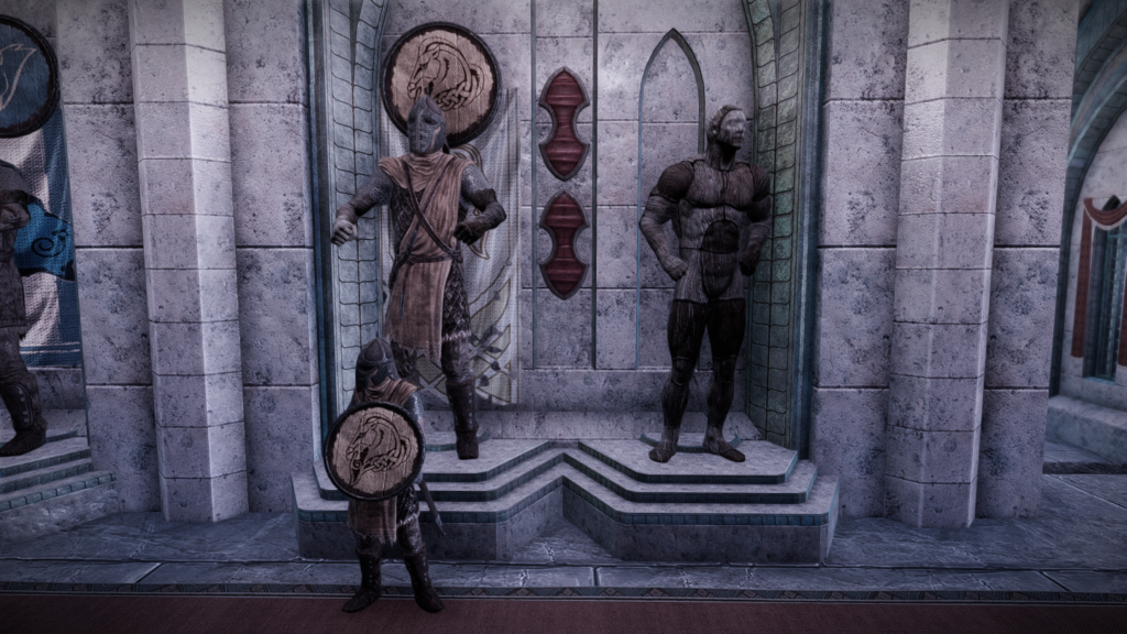 サムネの没スクショや、衛兵装備のマネキンと衛兵を並べた時のスクショも載せています。そっぽを向いてるマネキンもいますがこれもまたご愛嬌ということで…