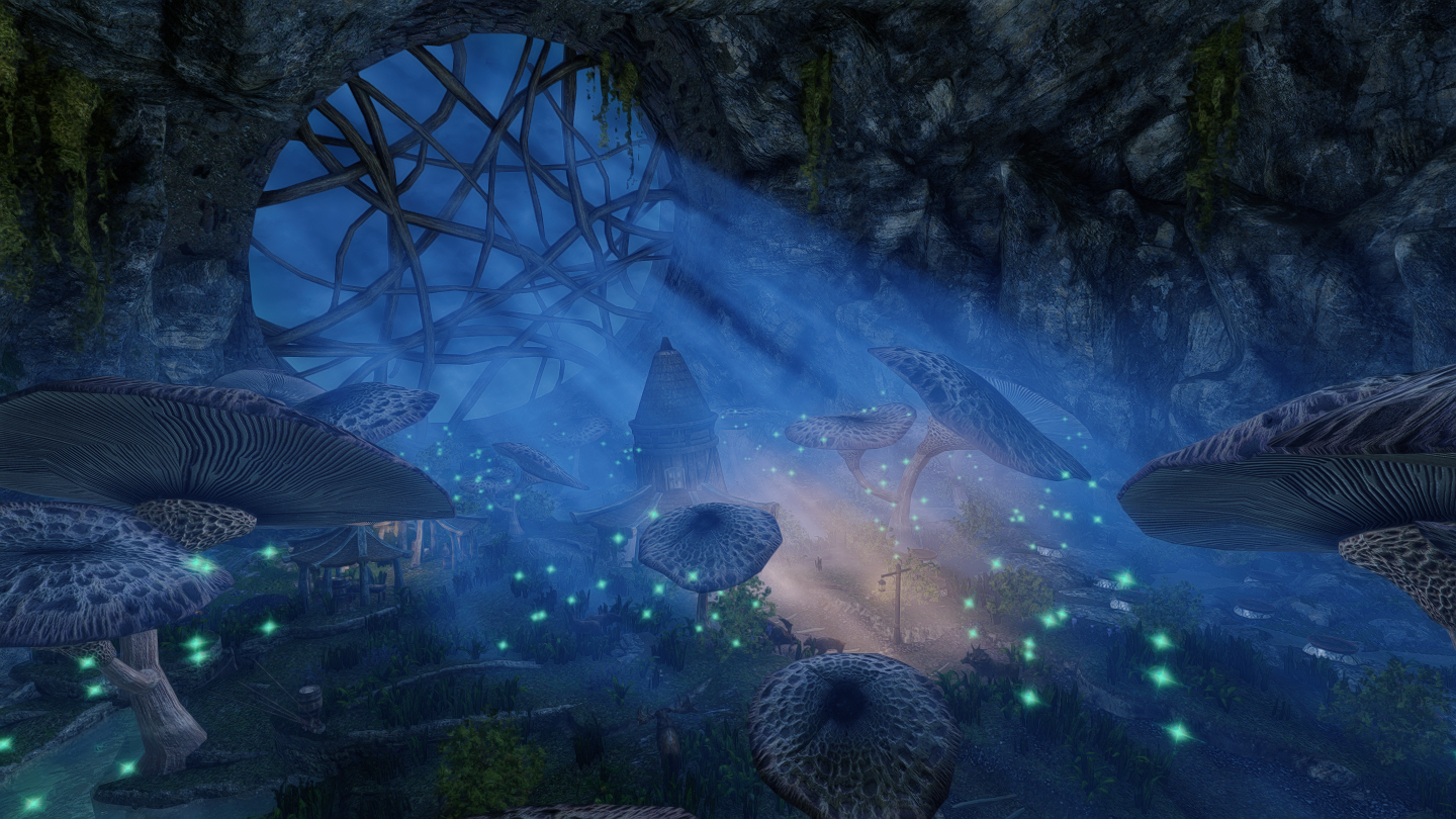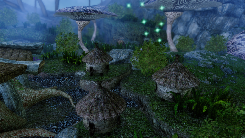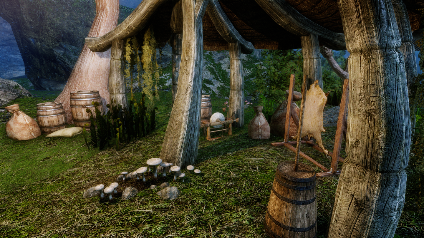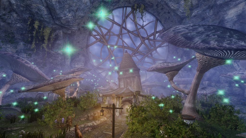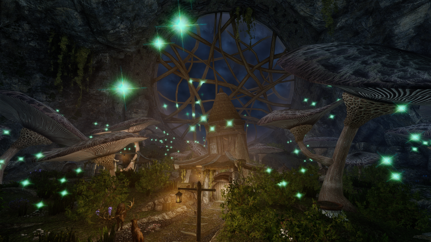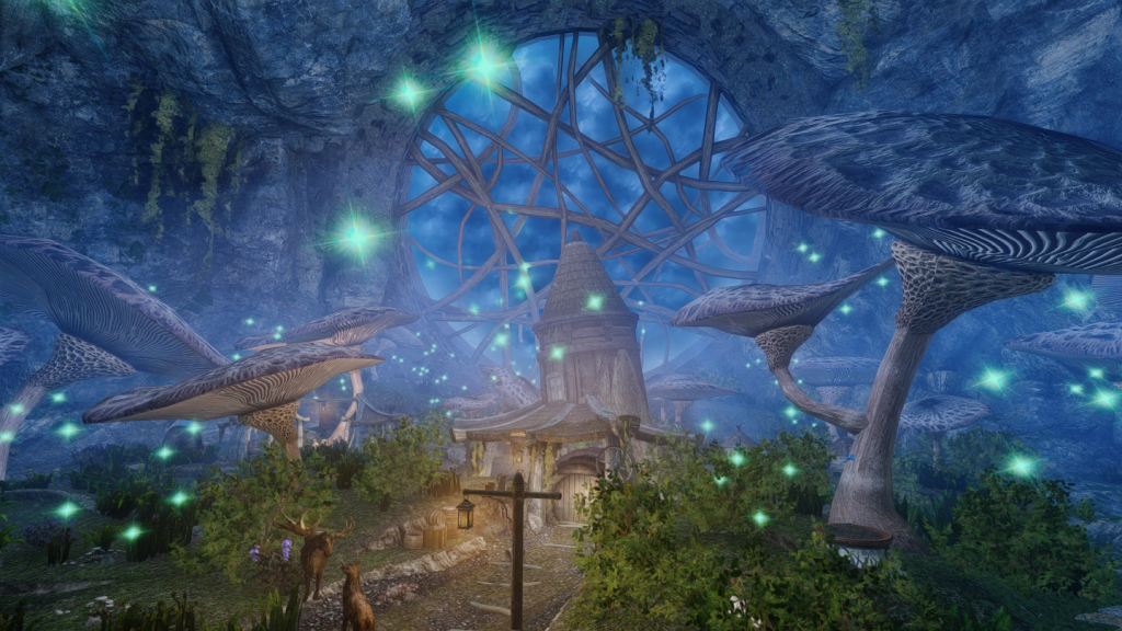 大きなキノコや光に包まれた、幻想的な雰囲気の一人用の家を追加するMODです。イヴァスルテッド北側の山道に入口が追加されています。
