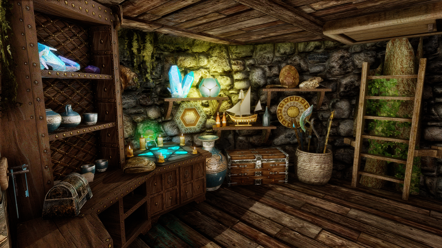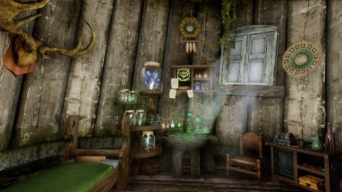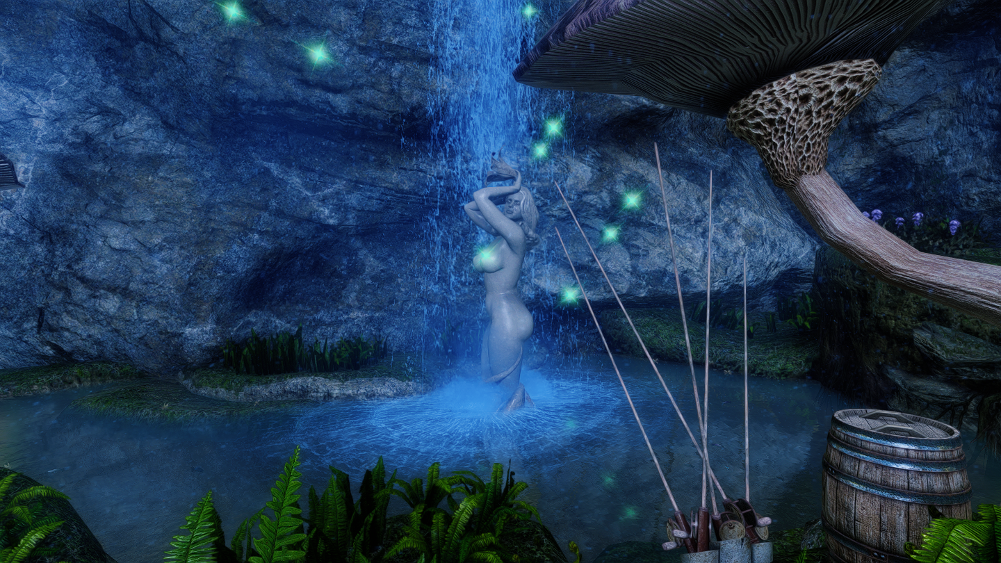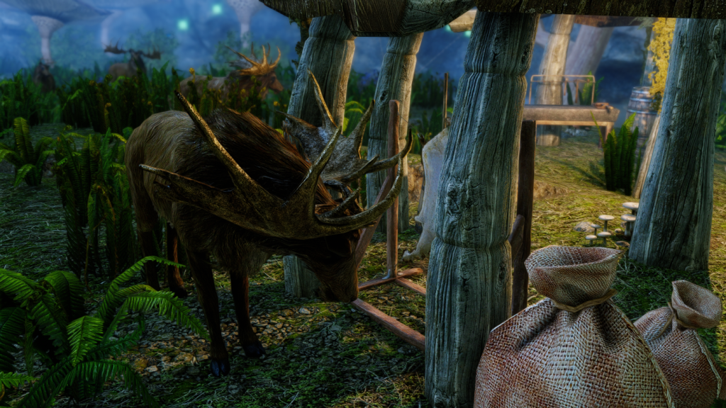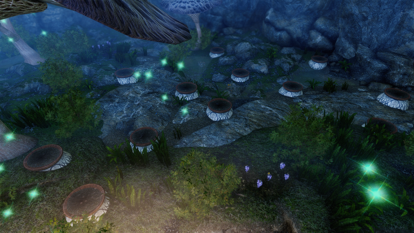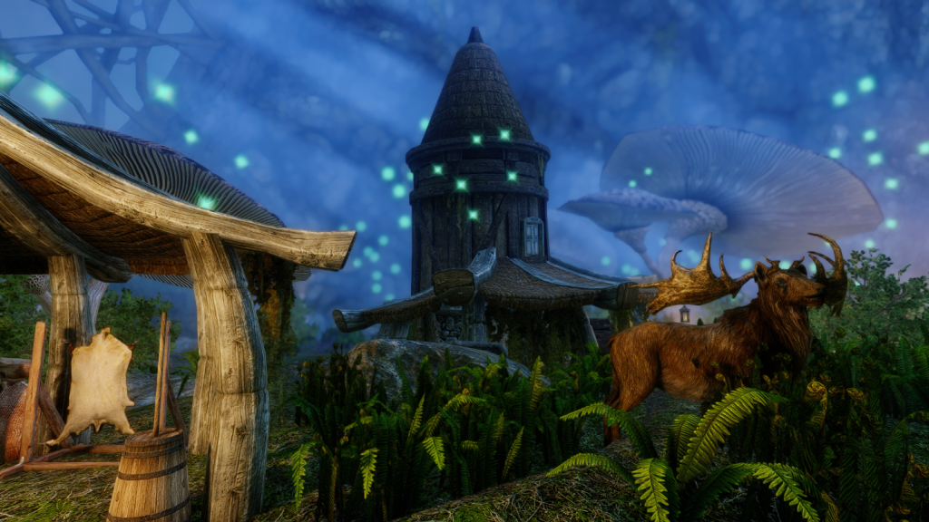 大きなキノコや光に包まれた、幻想的な雰囲気の一人用の家を追加するMODです。イヴァスルテッド北側の山道に入口が追加されています。