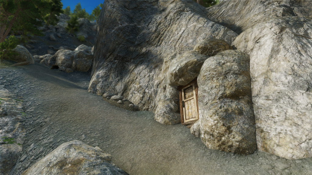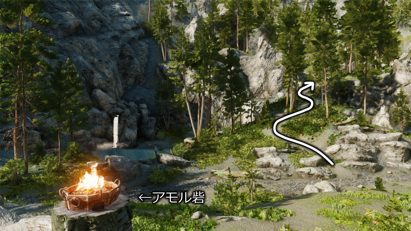 イヴァルステッドから北に下るか、アモル砦近くの坂(画像2枚目)を道なりに上がっていくと入口の扉が見えてきます。