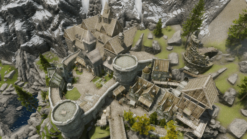 リバーウッドとホワイトランの間に、大きなプレイヤーハウス付きの集落を追加するMODです。敷地内には商人・衛兵NPCや各NPCの家、鉱山なども追加されています。また、プレイヤーハウスはお風呂付きです。