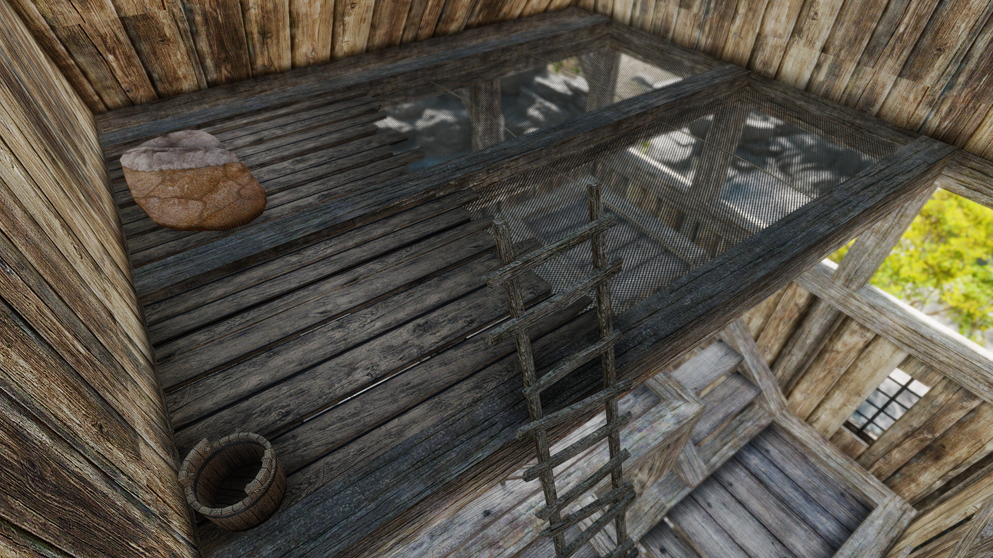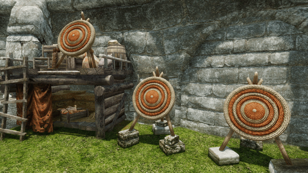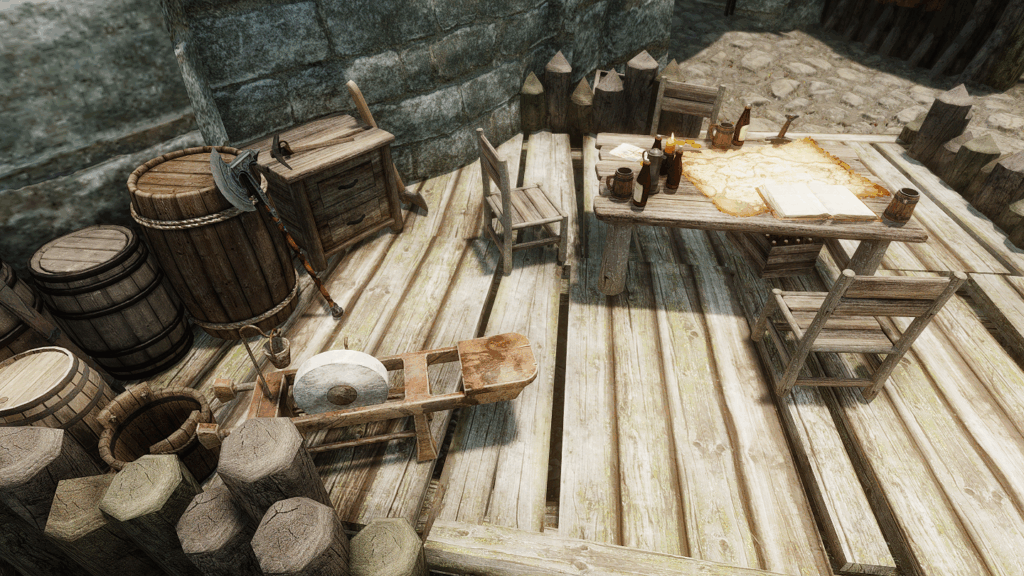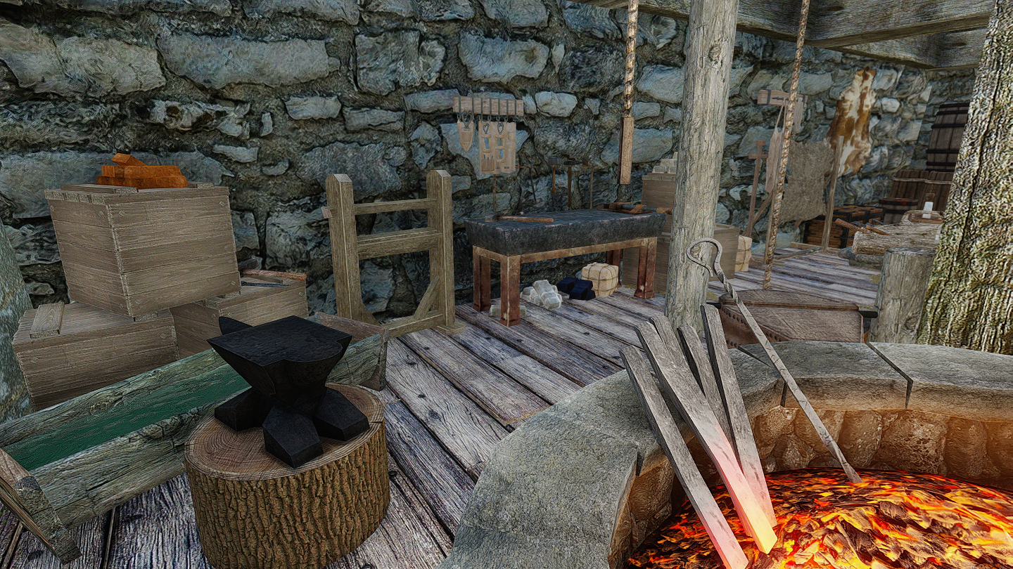 - 屋外:砥石/皮なめしの棚/作業台/鋳造器具/厩