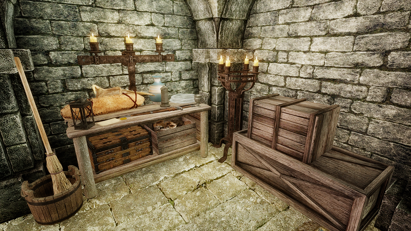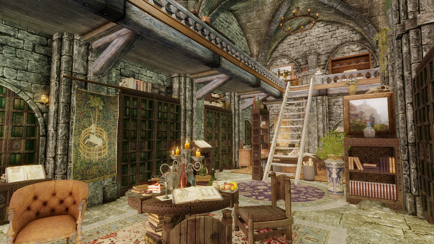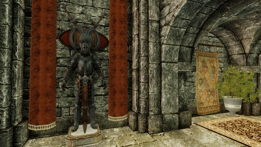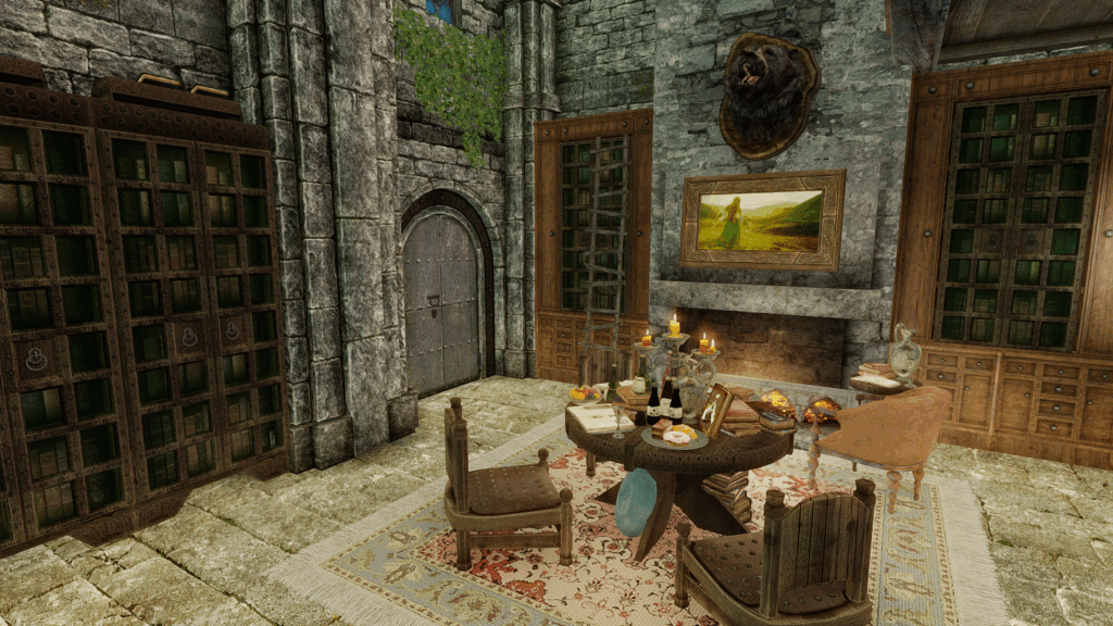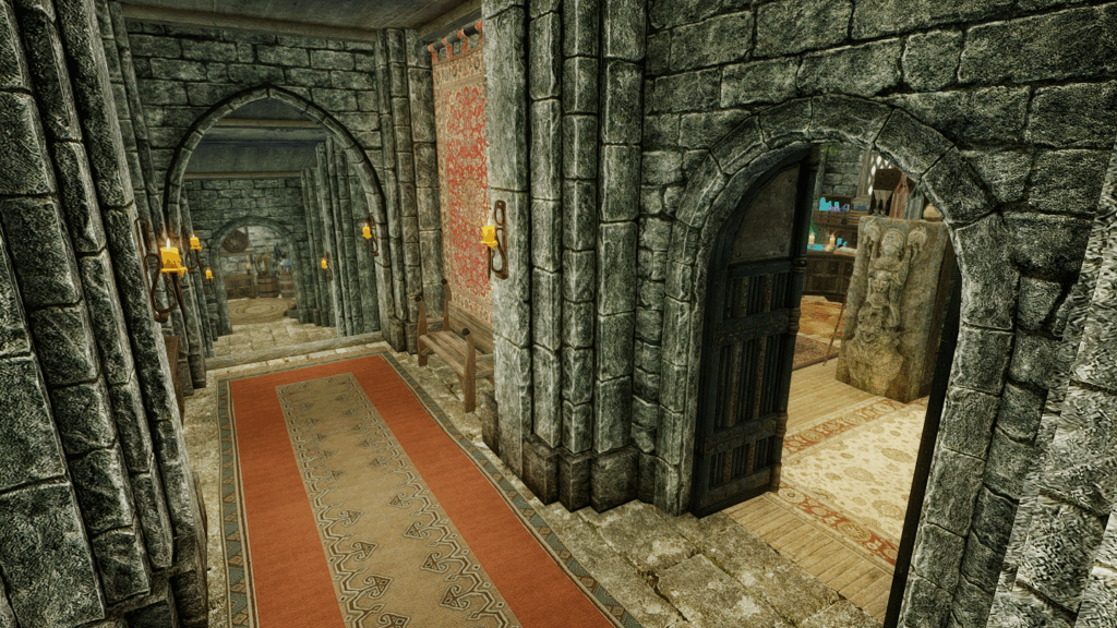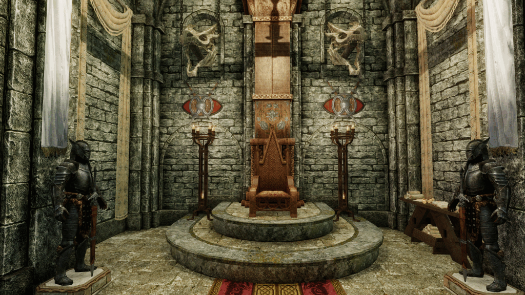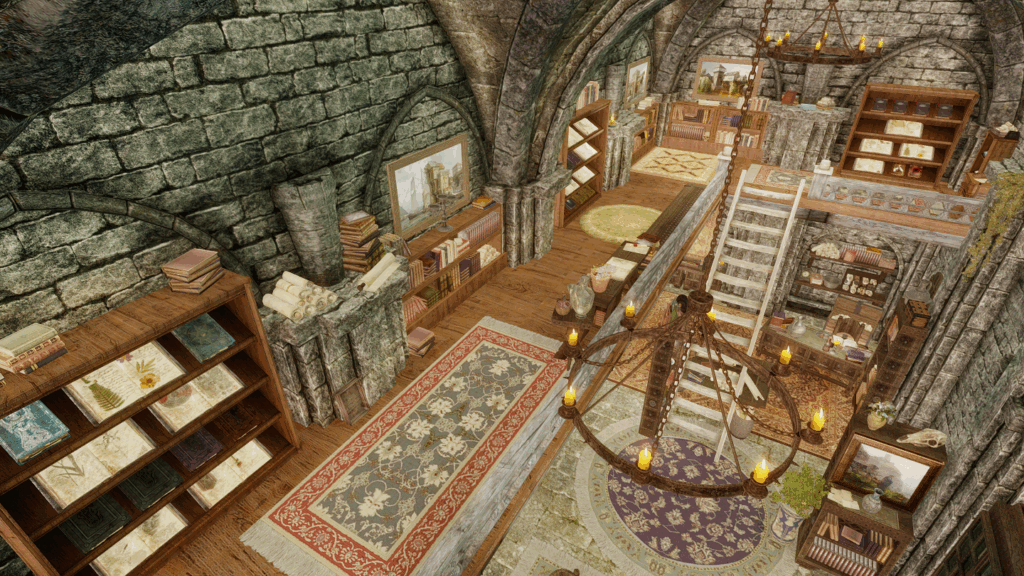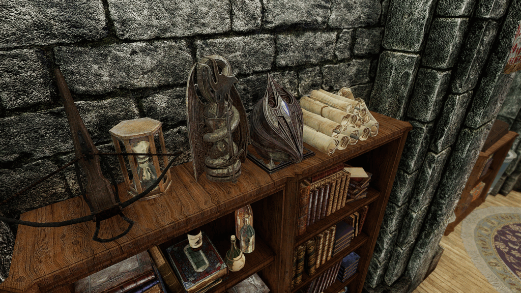 大規模な集落・家追加MODです。屋内外の隅々まで丁寧に作り込まれているのがとても感じられました。衛兵の詰所のような場所に、恐らく暇つぶしに使っているのであろうカードゲームやお酒が置かれているのが特に印象に残っています。