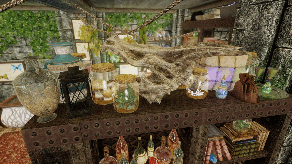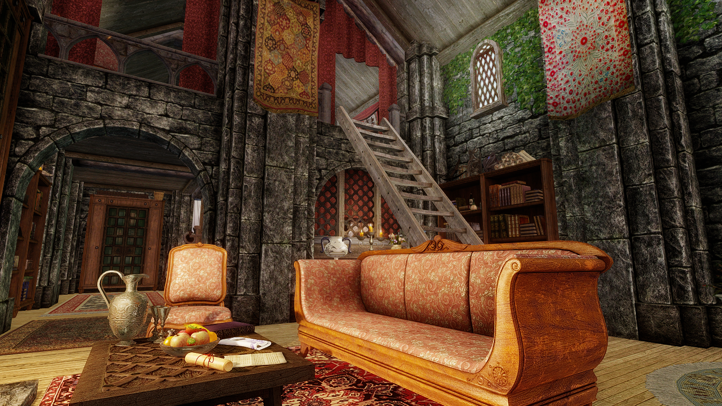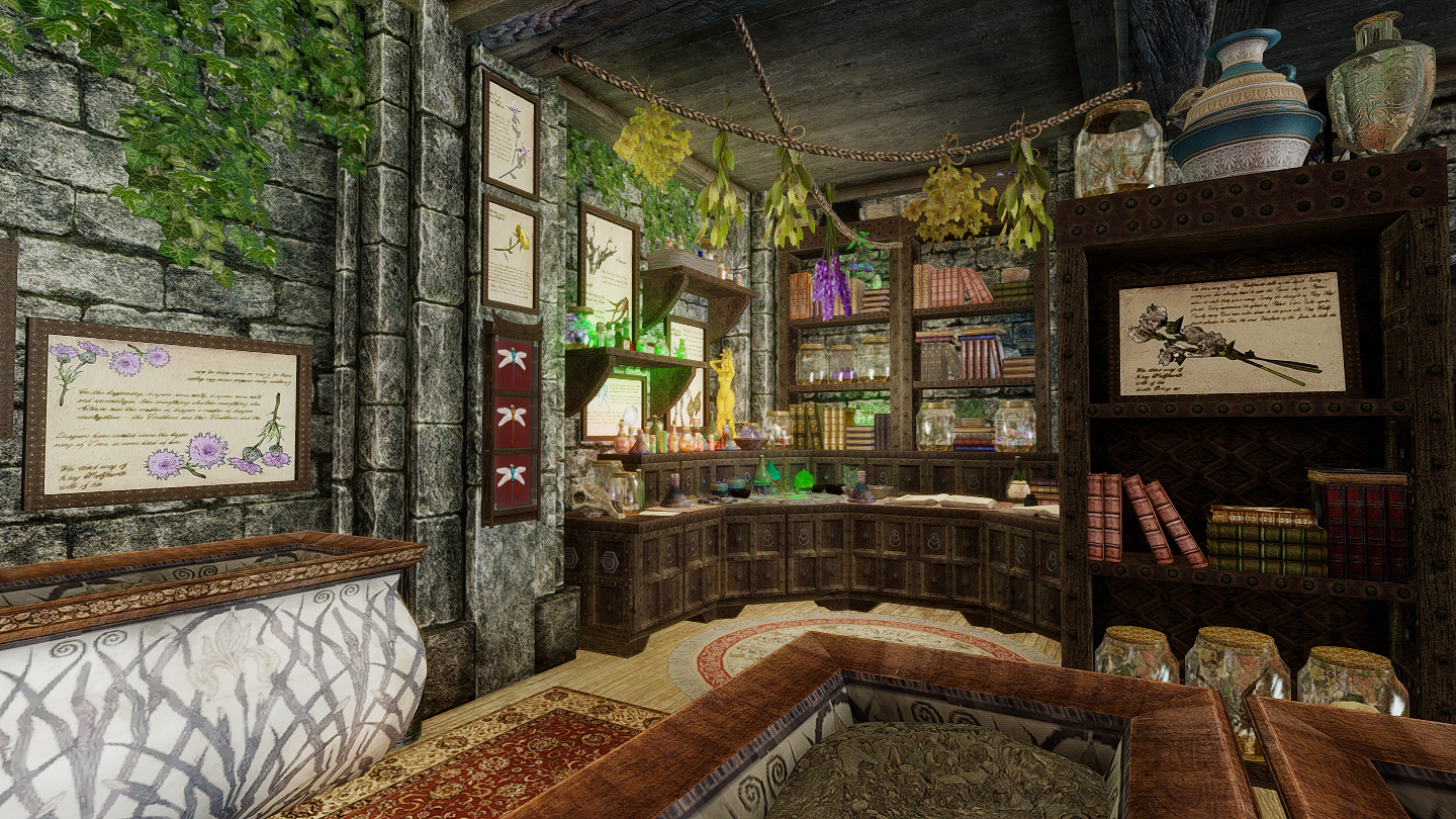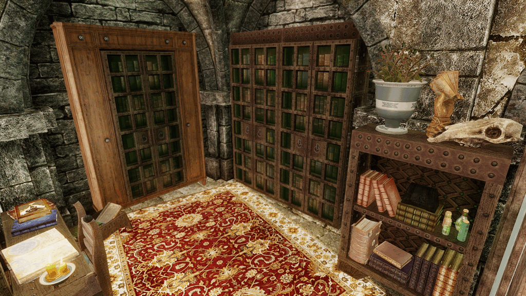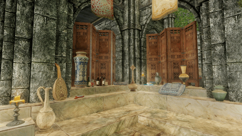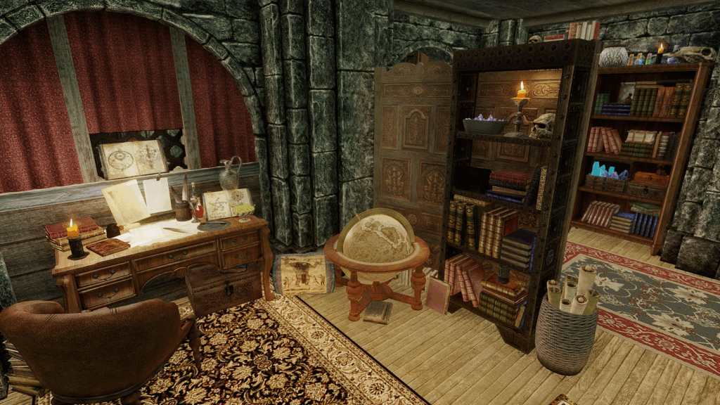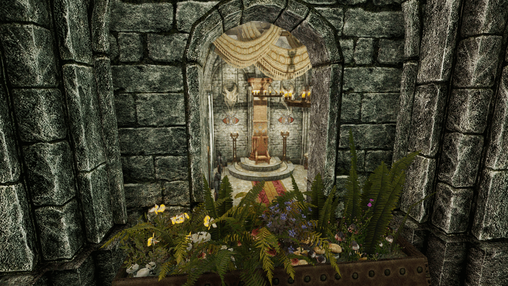大規模な集落・家追加MODです。屋内外の隅々まで丁寧に作り込まれているのがとても感じられました。衛兵の詰所のような場所に、恐らく暇つぶしに使っているのであろうカードゲームやお酒が置かれているのが特に印象に残っています。