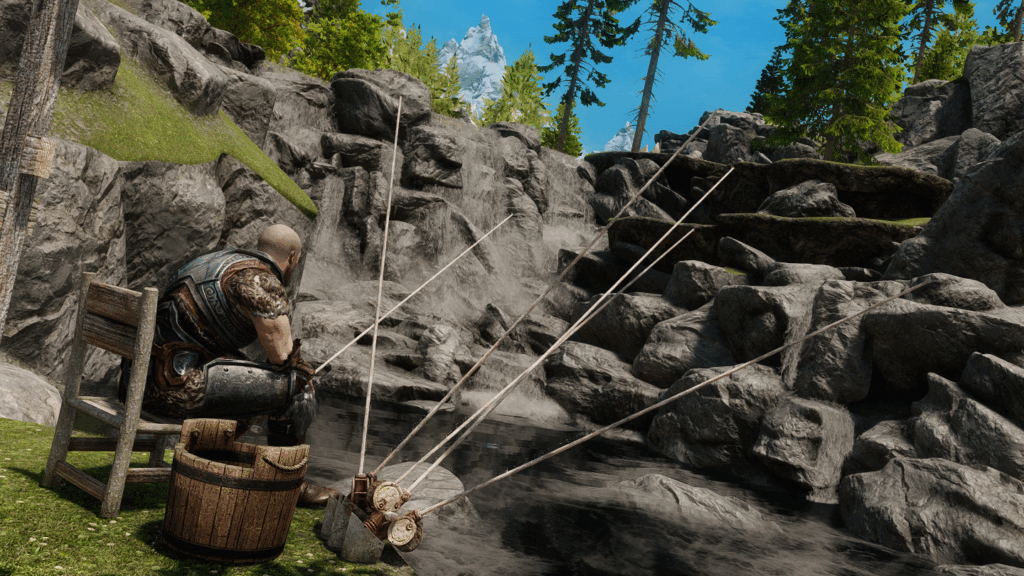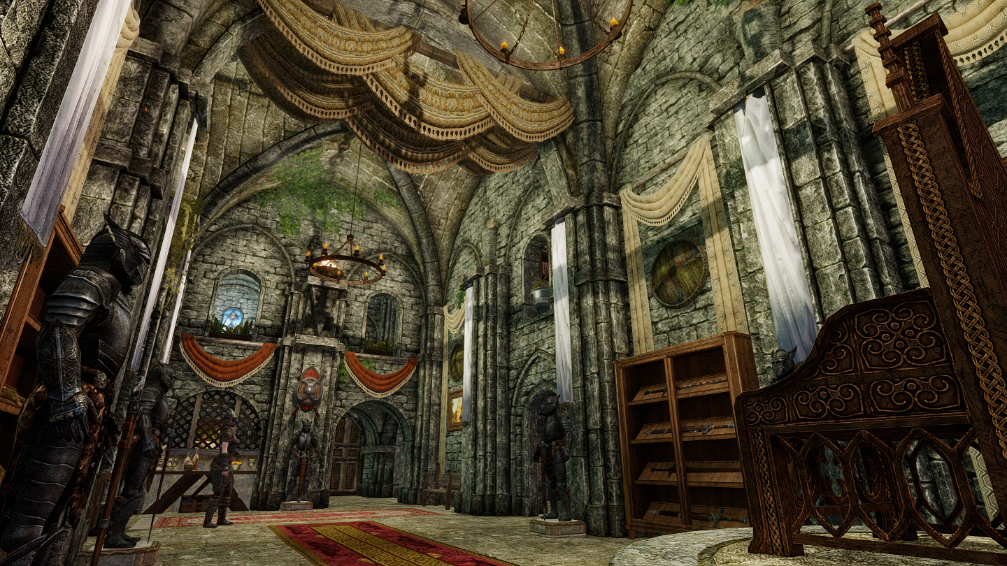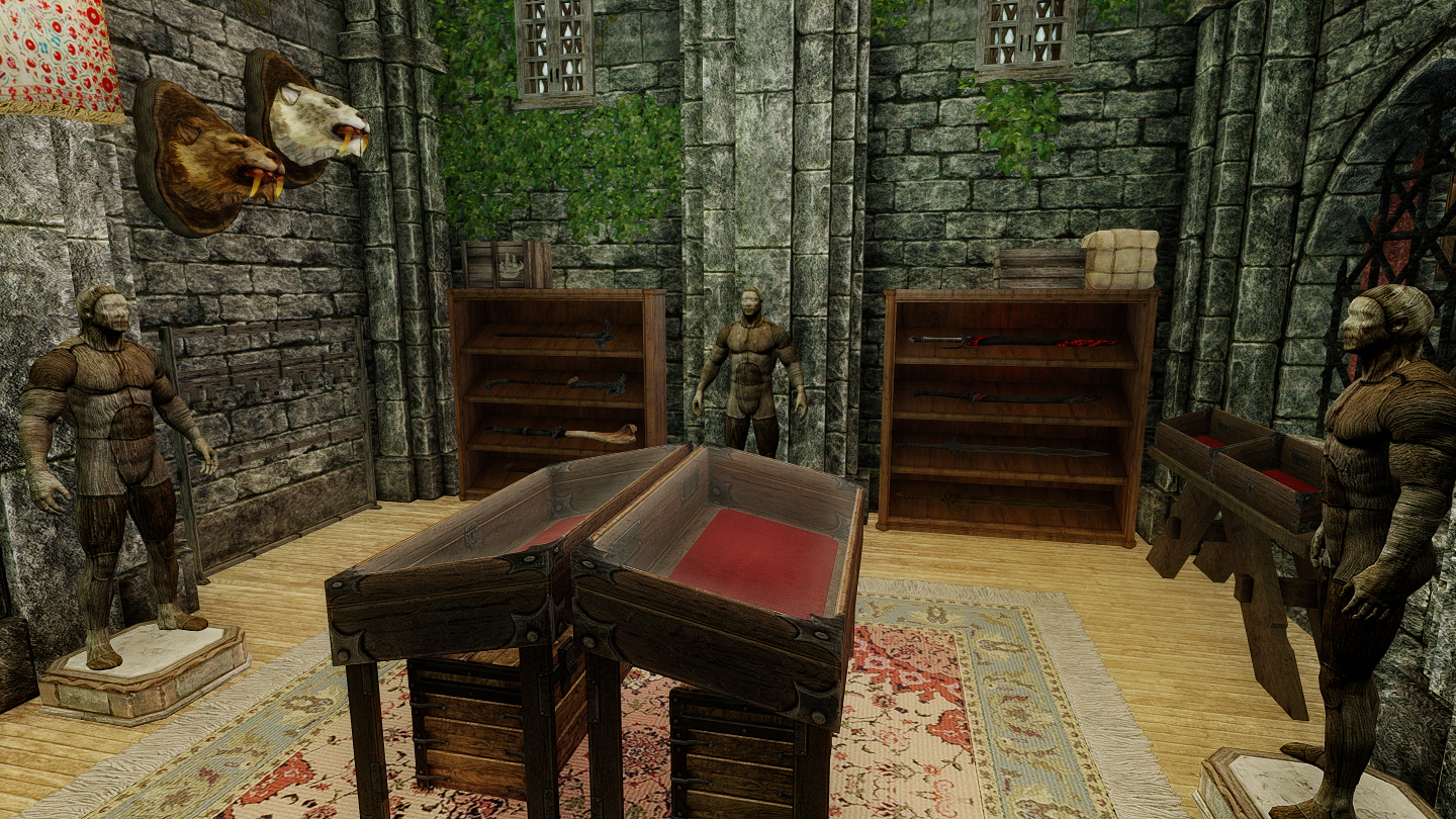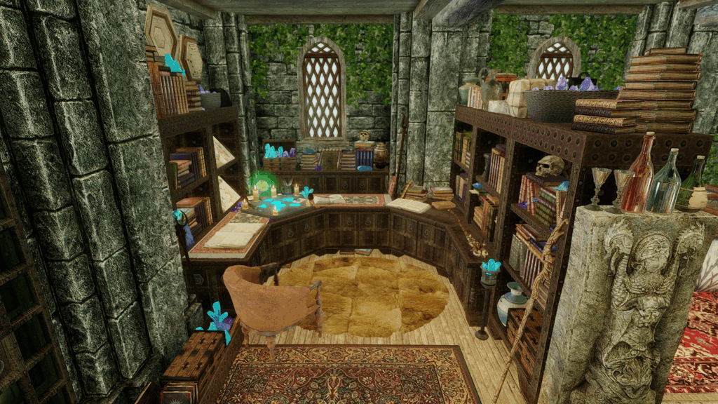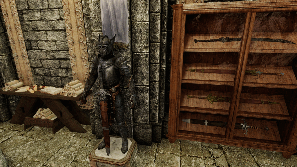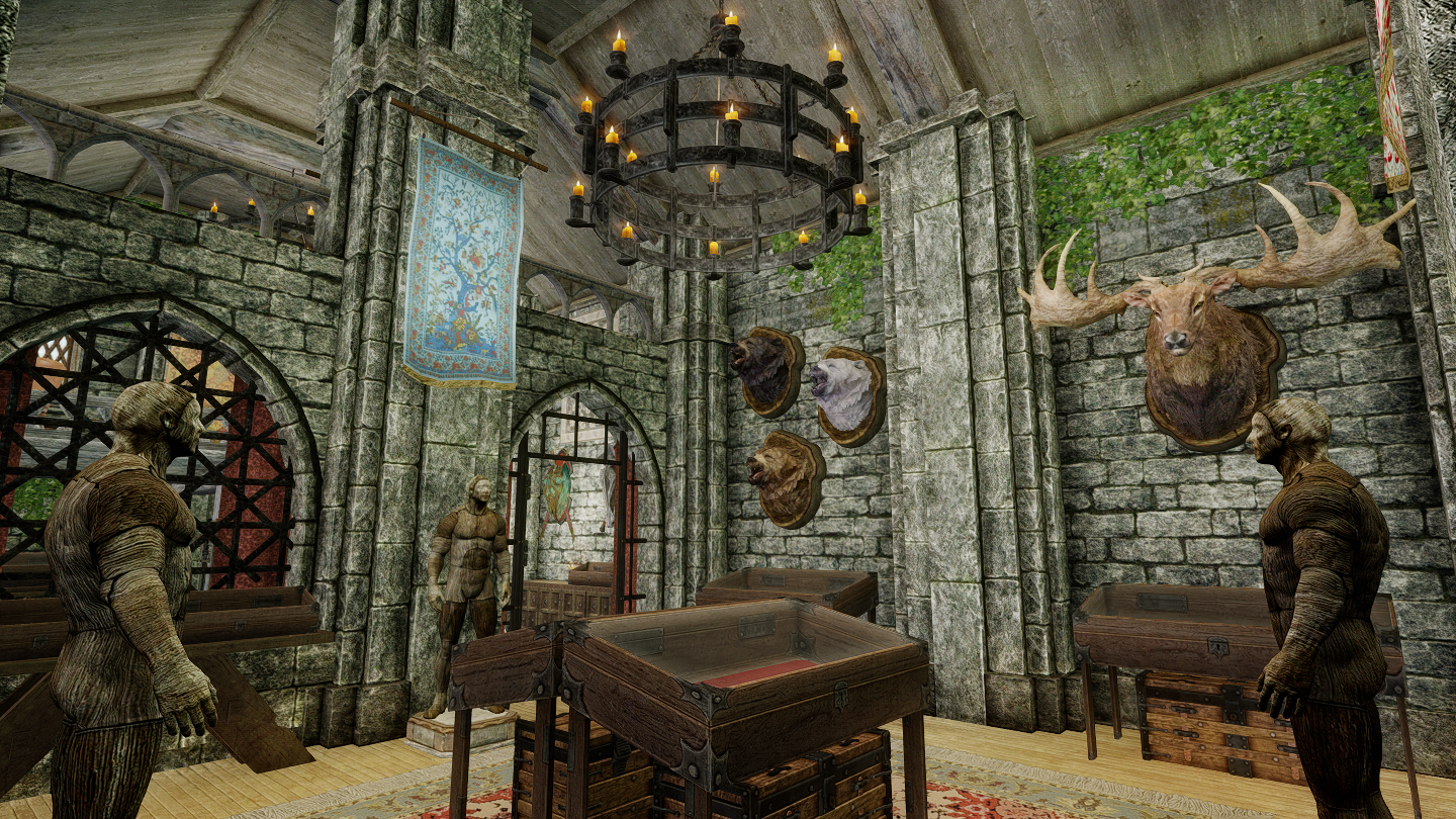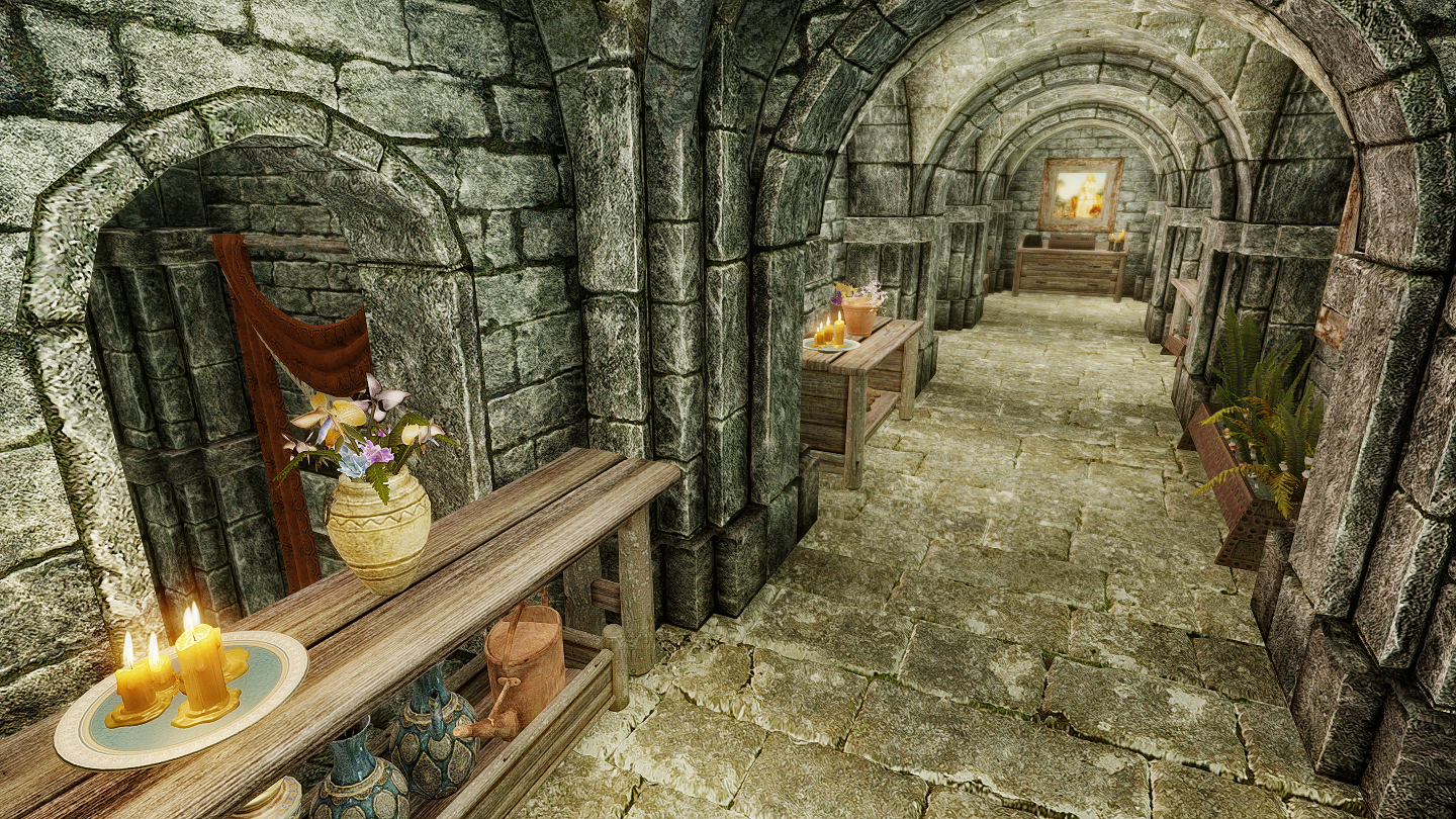 大規模な集落・家追加MODです。屋内外の隅々まで丁寧に作り込まれているのがとても感じられました。衛兵の詰所のような場所に、恐らく暇つぶしに使っているのであろうカードゲームやお酒が置かれているのが特に印象に残っています。