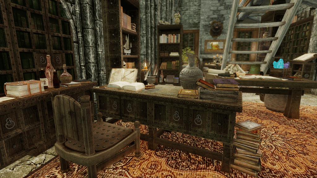NPCたちも集落、そしてスカイリムで生活する人間のように作られています。各々に設定されたパッケージや家に置いてある小物や家具がそれぞれ違っていて「この人はお酒が好きなのかな」とか「昼間は家で寝てるのかな」など、その人の人柄が伺えるようです。