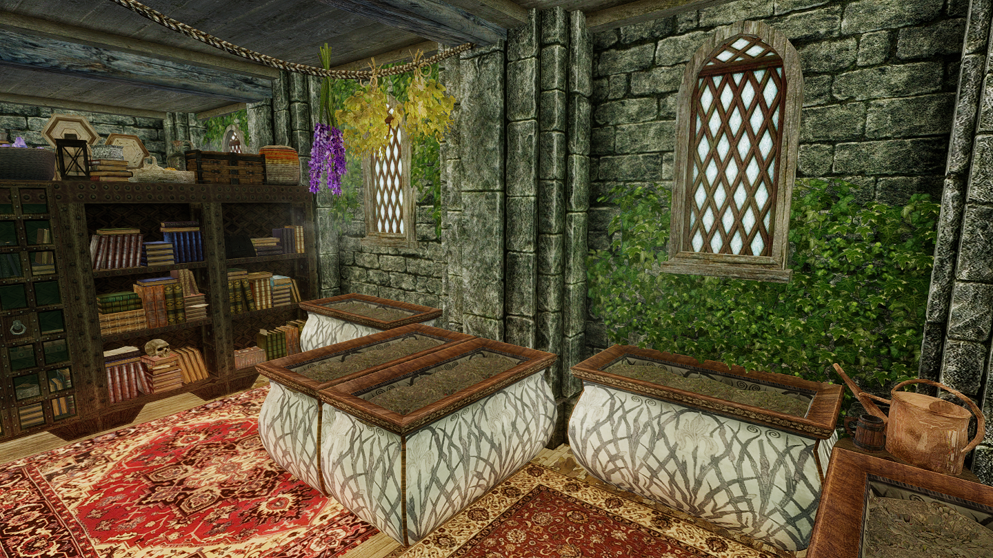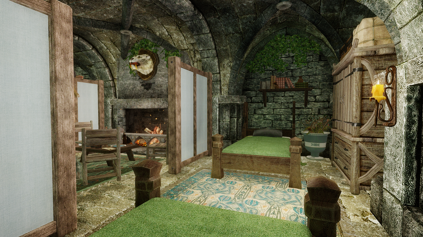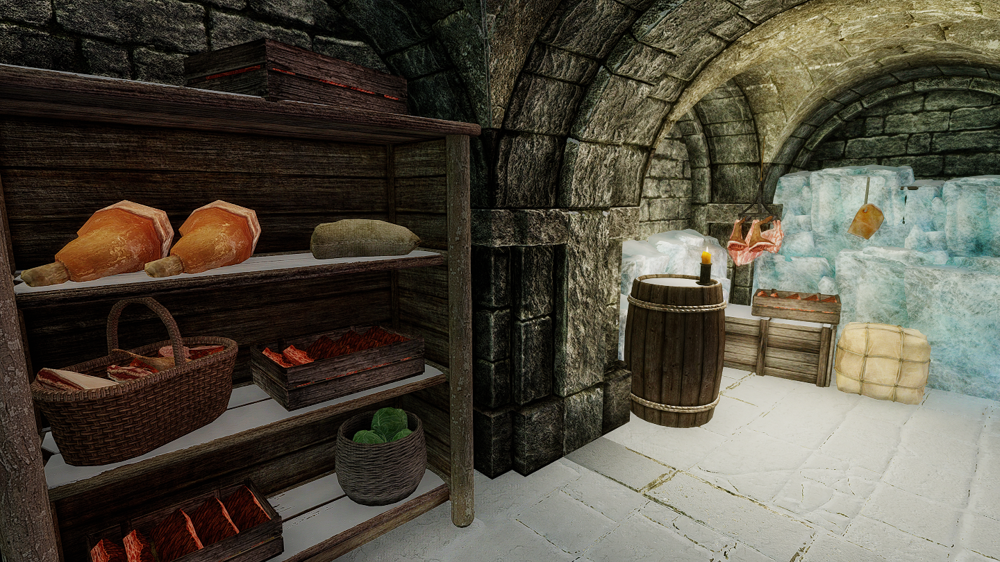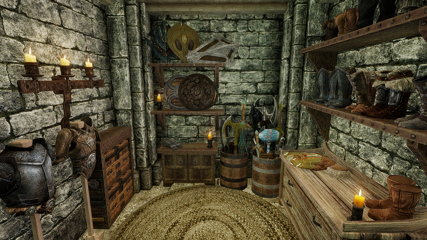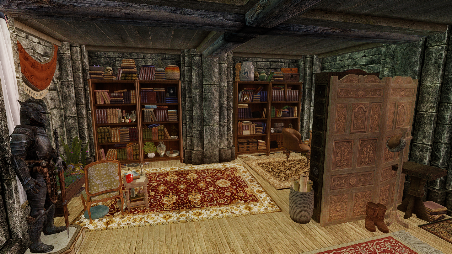 大規模な集落・家追加MODです。屋内外の隅々まで丁寧に作り込まれているのがとても感じられました。衛兵の詰所のような場所に、恐らく暇つぶしに使っているのであろうカードゲームやお酒が置かれているのが特に印象に残っています。