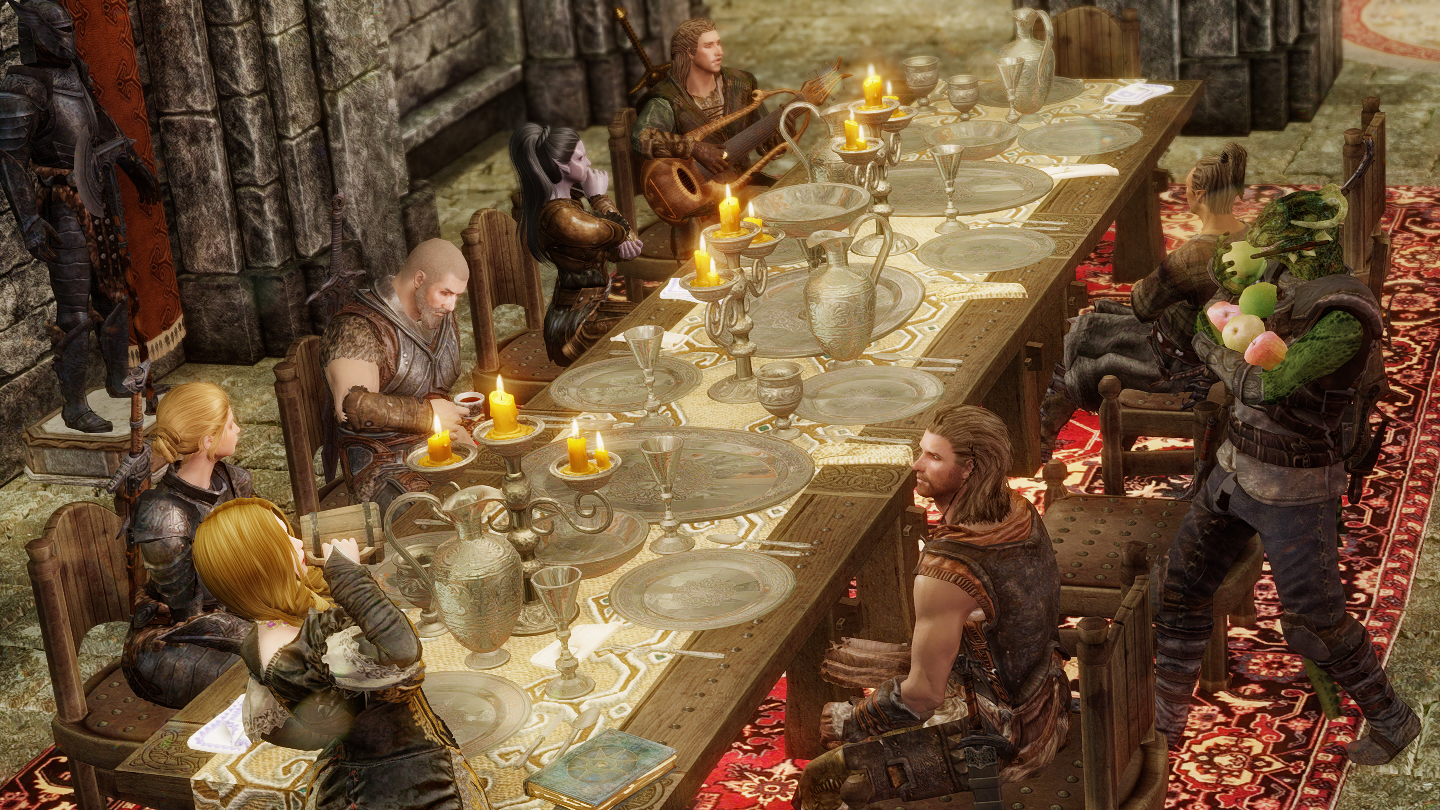 NPCたちも集落、そしてスカイリムで生活する人間のように作られています。各々に設定されたパッケージや家に置いてある小物や家具がそれぞれ違っていて「この人はお酒が好きなのかな」とか「昼間は家で寝てるのかな」など、その人の人柄が伺えるようです。