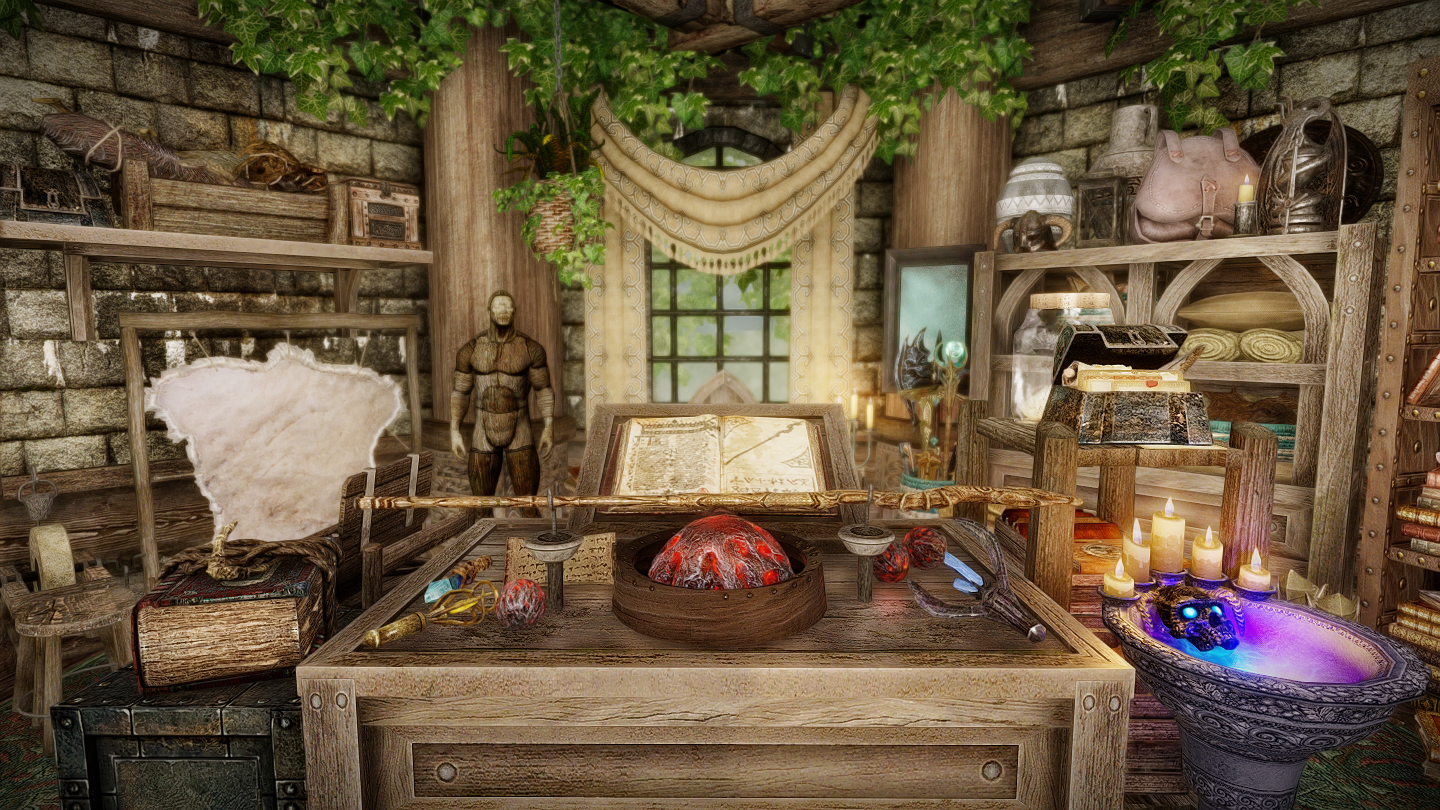 - 前側:砥石/皮なめしの棚/マネキン/シングルベッド×1/容姿変更鏡/アカトシュの祠/杖の付呪器/解呪の泉/浸透室/付呪器