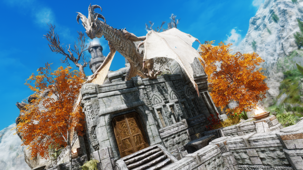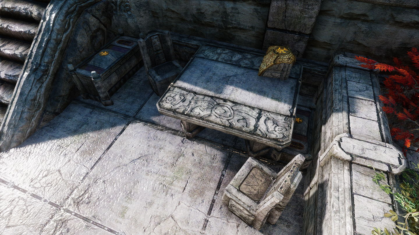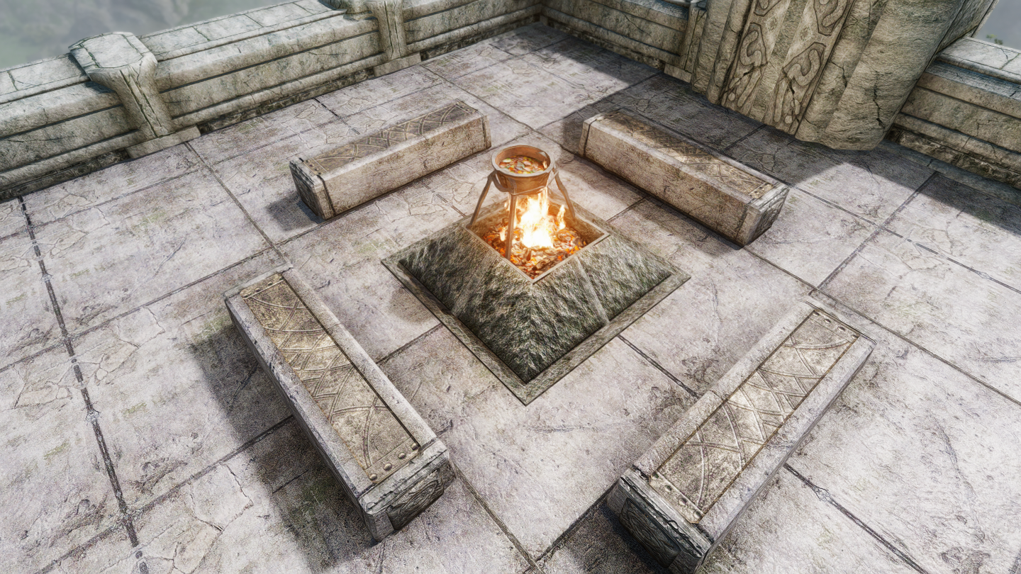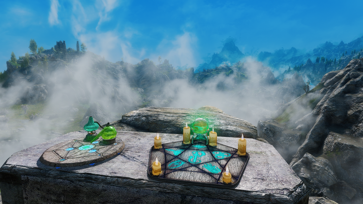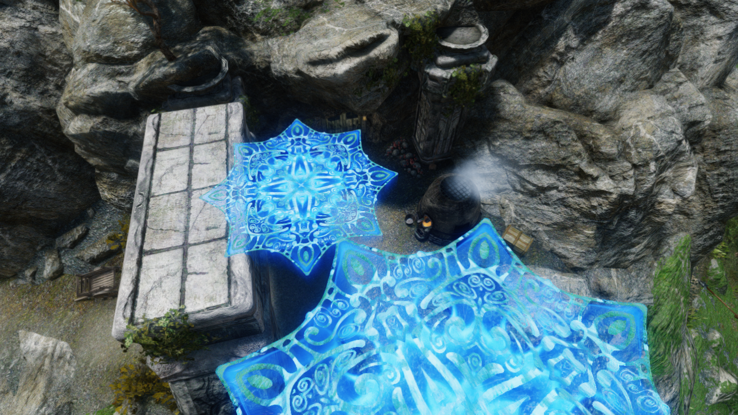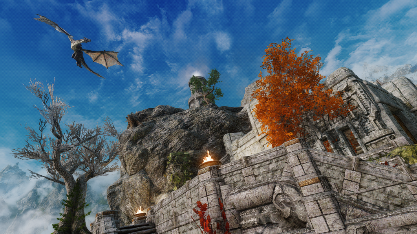 リーチ地方・恋人の石碑やコルスケッガー鉱山の近くに、石造りの浮遊島タイプの家を追加するMODです。足場を渡って行き来できる箇所がいくつかあります。