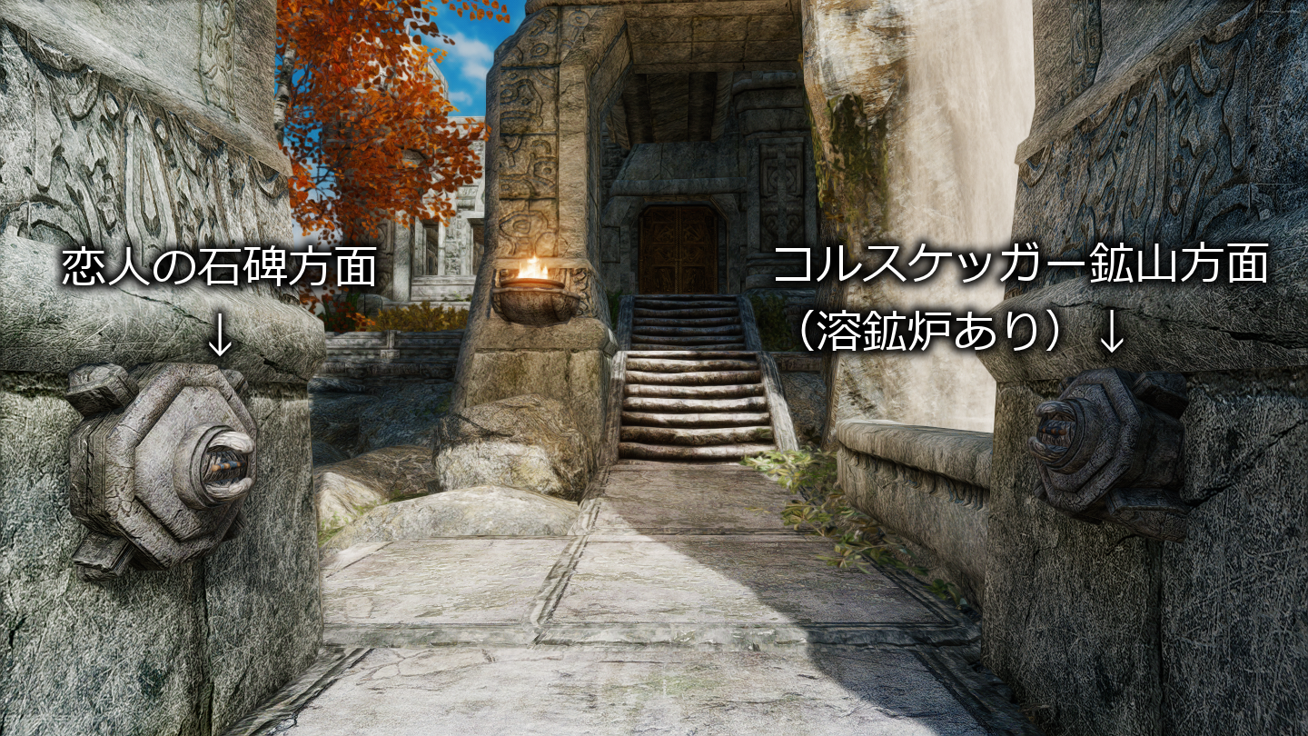 溶鉱炉はコルスケッガー鉱山にあるものを使用できます。玄関手前にあるアーチの右側(滝がある方)のハンドルを引くと、コルスゲッカー鉱山に向かうための足場が出現します。一方通行です。