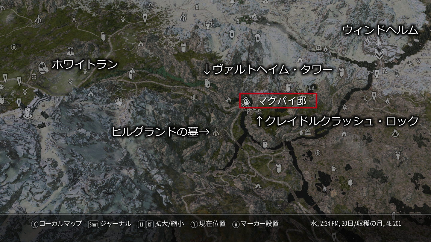 徒歩でお越しの際は、ホワイトラン~ウィンドヘルム間にあるヴァルトヘイム・タワーなどを目指して川沿いに歩く感じになりそうです。