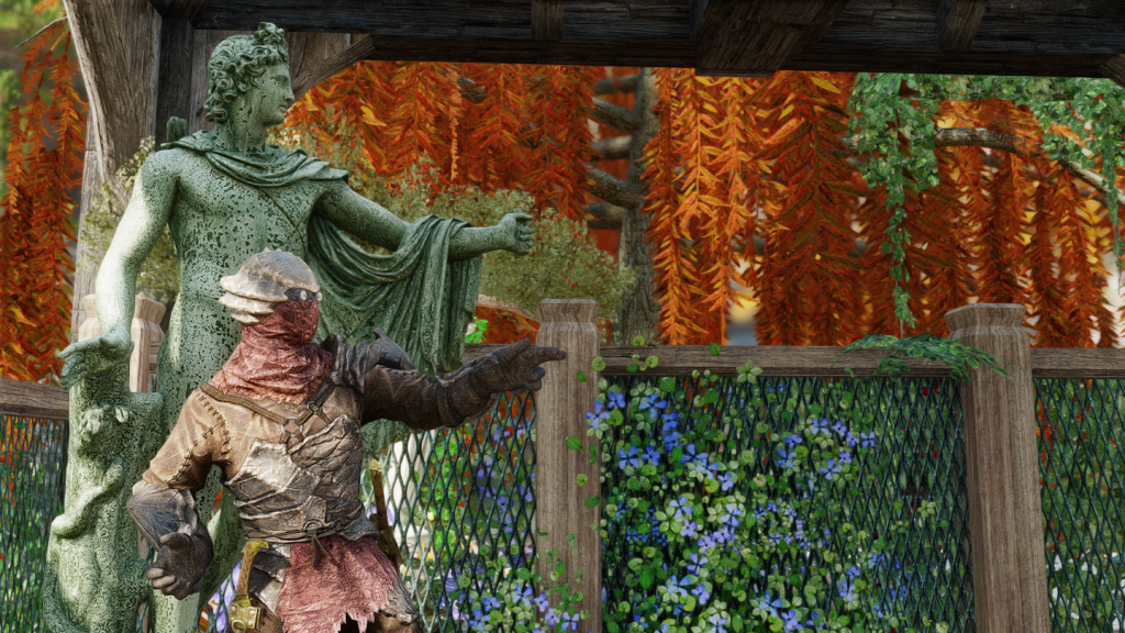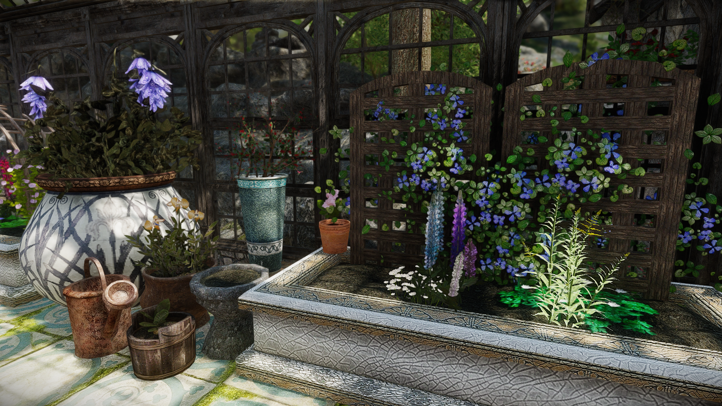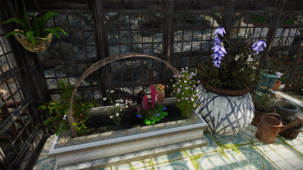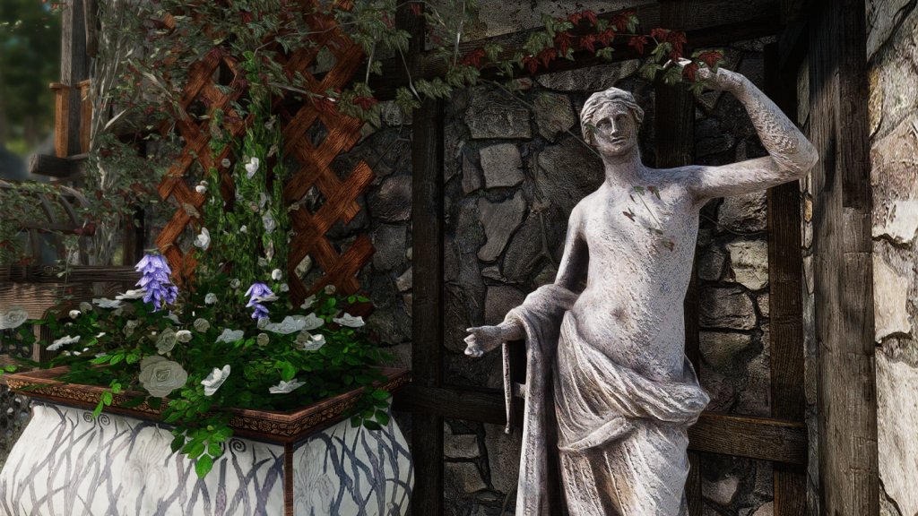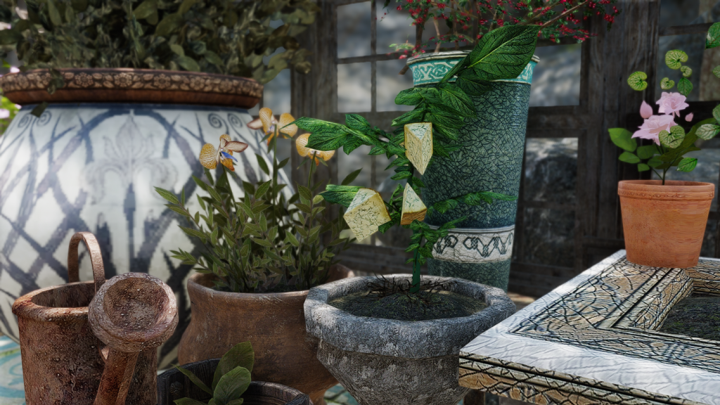 色とりどりの植物や美術品たちに囲まれたお家のMODです。Descriptionによると何度も作り直しながら細部までこだわって作成されたとのことで、お邪魔していてそれらを強く感じました。見どころが多く、屋内外のどこを撮っても映画のワンシーンのような雰囲気です。