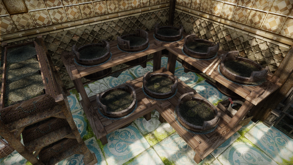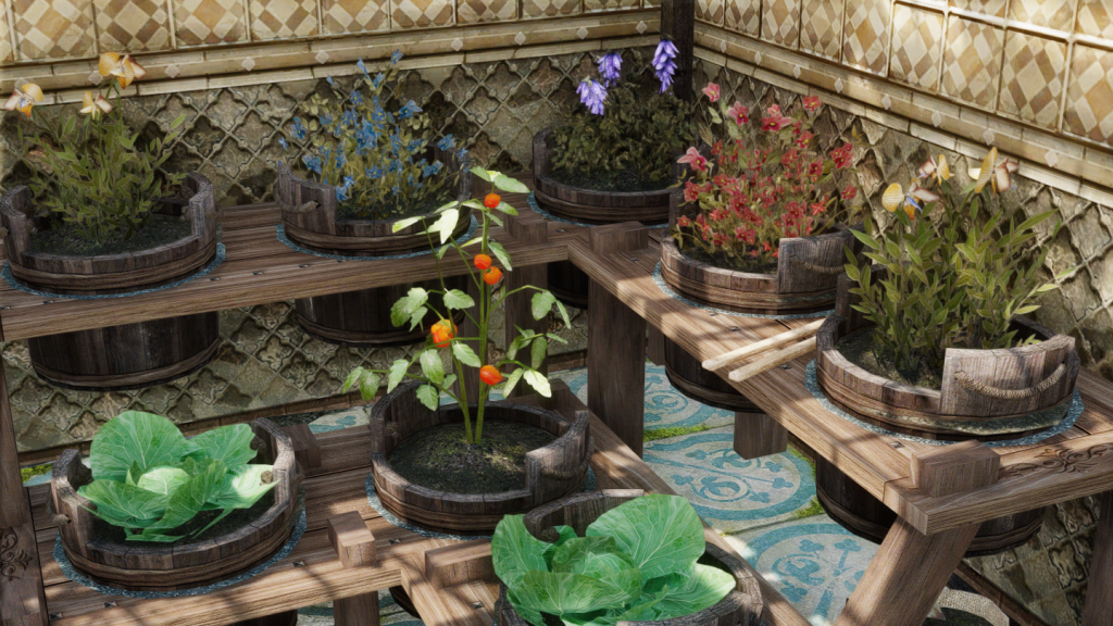 いろんな種類の植木鉢があり、高さや周囲の植物に合わせて植える物を変えてみるのも楽しかったです。自環境では栽培できる植物の種類を増やすMODも入れています。