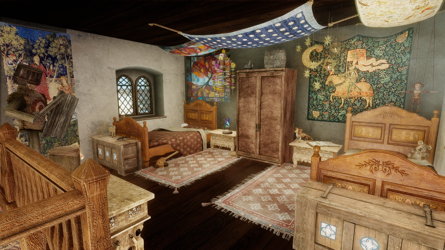 階段を上がった先が子供部屋、もしくはゲストルームになっています。机の上に置かれた本(画像3枚目)から部屋を切り替えられます。